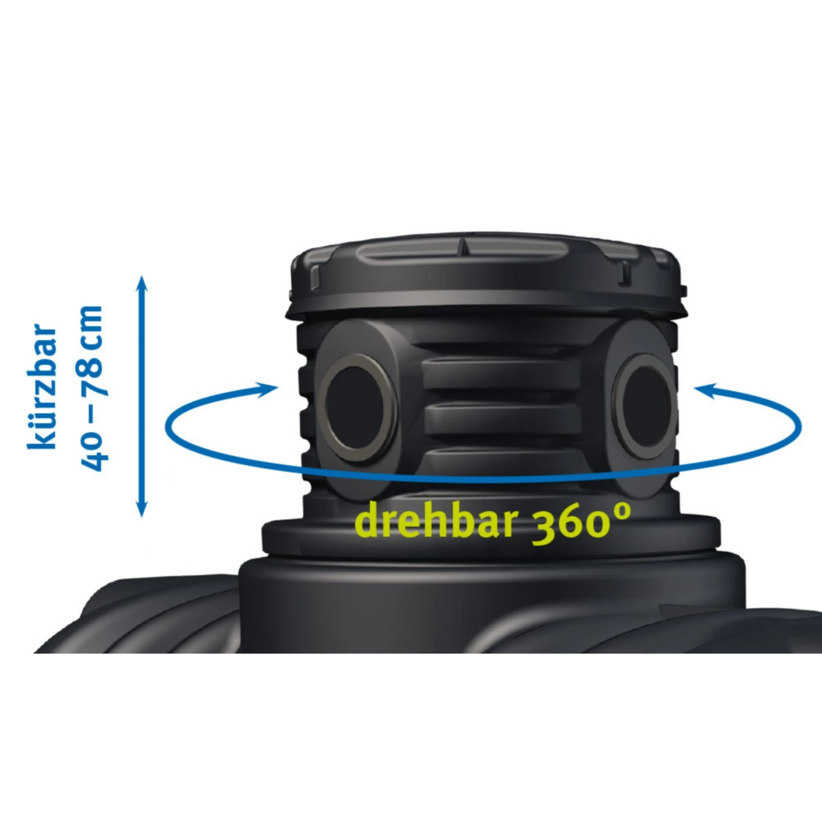 Das geringe Gewicht und die kompakten Abmessungen ermöglichen den einfachen Selbsteinbau ohne schweres Gerät. Der Erdtank ist mit einem drehbaren Domschacht und einem kindersicheren, begehbaren Kunststoffdeckel ausgestattet. Der frostfreie Einbau zum ganzjährigen Betrieb der Regenwassernutzungsanlage ist somit standardmäßig möglich, sowie die Anpassung an die Geländeoberfläche durch den kürzbaren Domschacht. Die Lippendichtungen für die Anschlüsse von Zulauf, Überlauf und Pumpentechnik sind bereits vormontiert und sorgen für eine schnelle und sichere Montage.