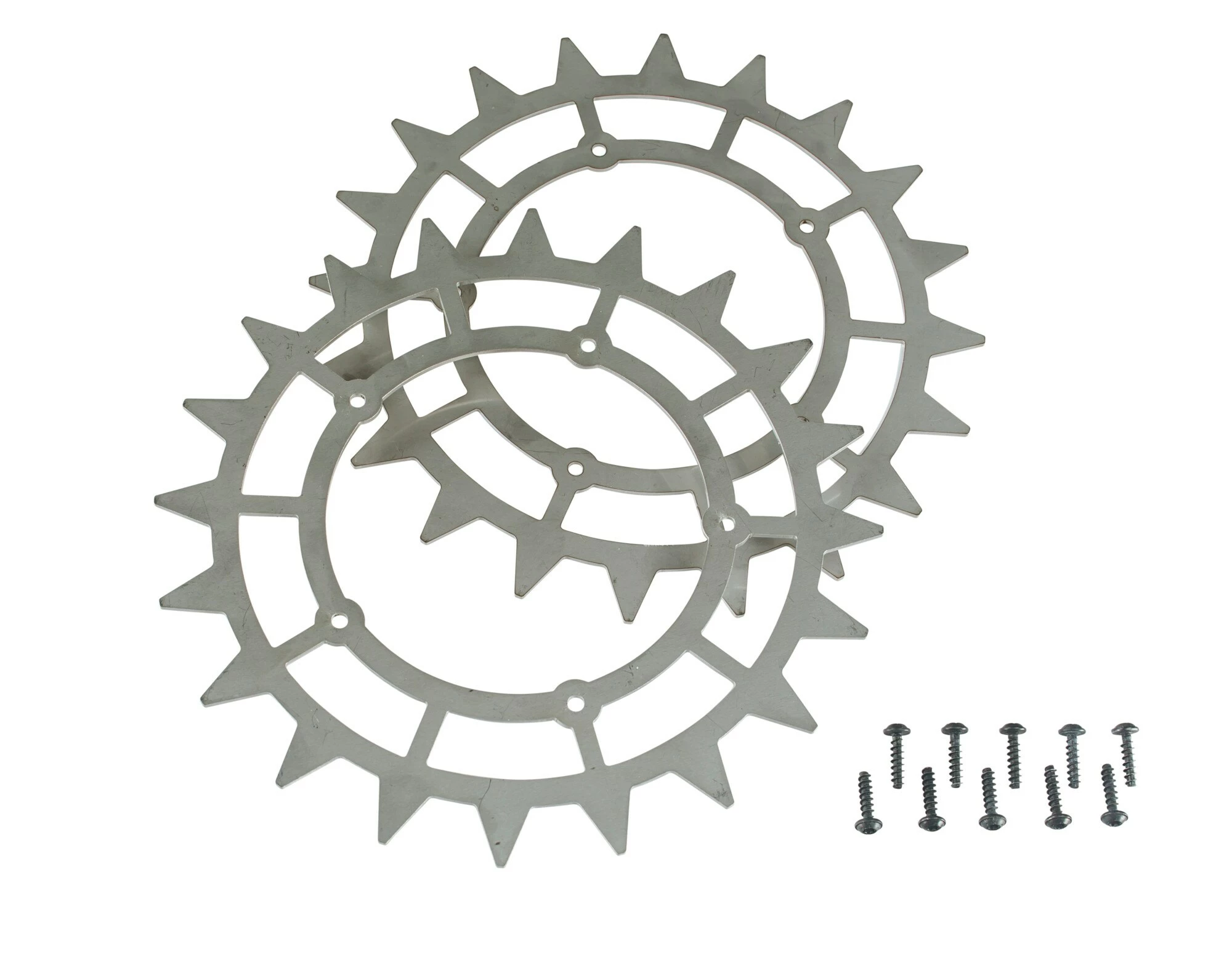 Der aus hochwertigem, rostfreien Edelstahl bestehende Radkrallensatz kann für alle Robolinho Mähroboter eingesetzt werden. Er sorgt für traktionsstarkes Vorankommen bei Steigungen und schwierigeren Bodenverhältnissen. Leicht durch beiliegende Befestigungsschrauben zu montieren.