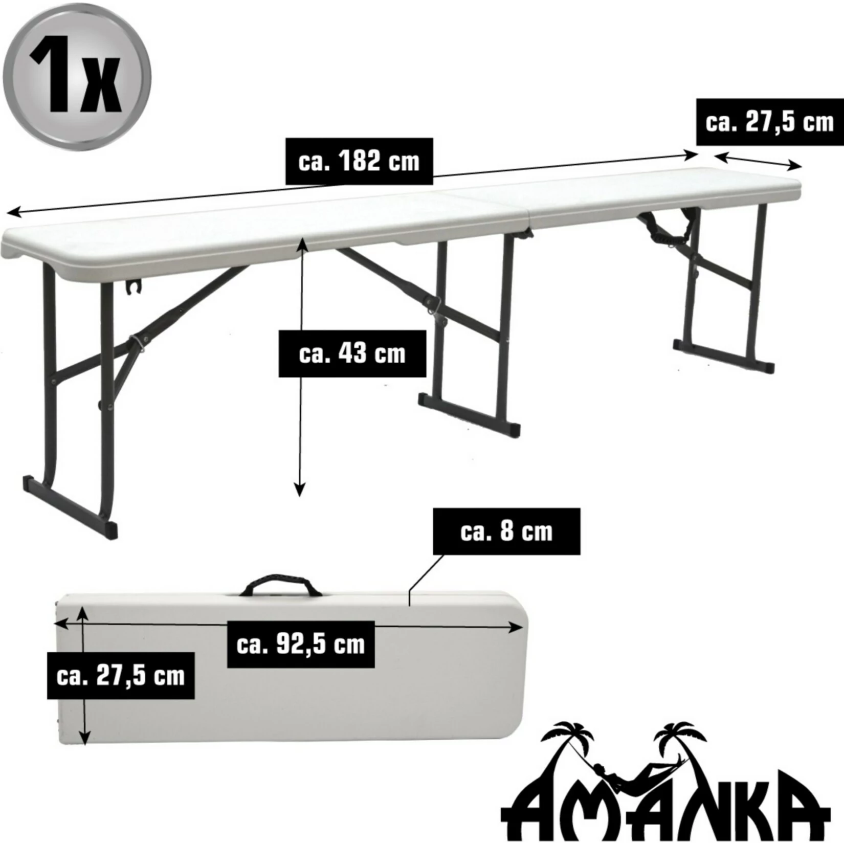 – Sitzfläche ca. 182 x 27,5 x 4 cm