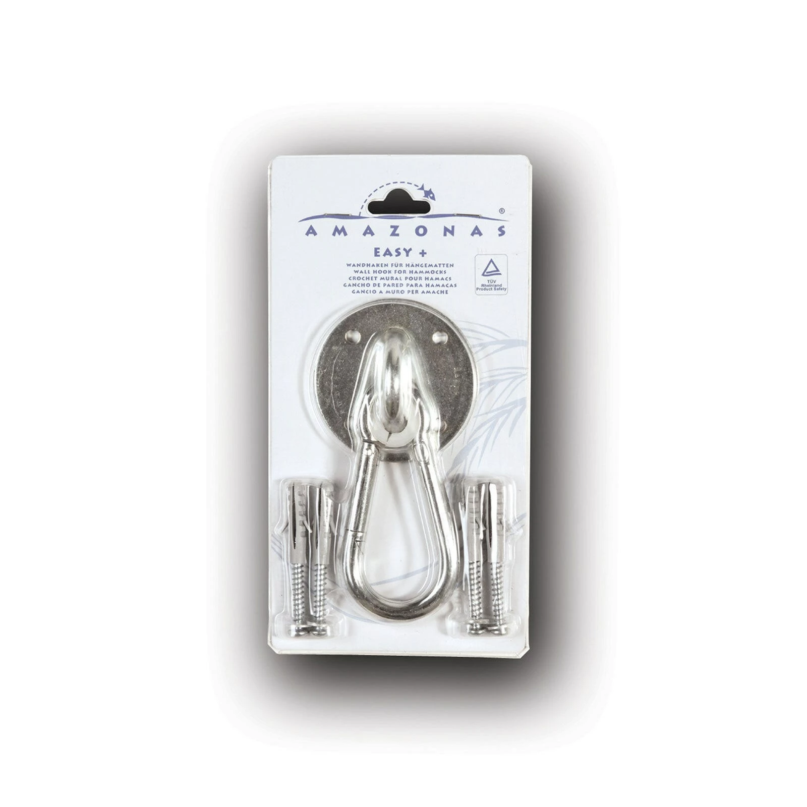Das praktische Hakensystem easy+ wurde vom Hersteller Amazonas speziell für die Wandaufhängung von Hängematten konstruiert. Am integrierten Karabinerhaken lässt sich die Hängematte einfach einhängen.
