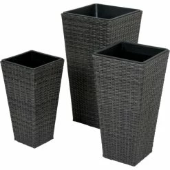 Garden Pleasure 3er Set Rattan Pflanzschale Blumentopf Pflanzschale Übertopf Kübel Blumenkübel