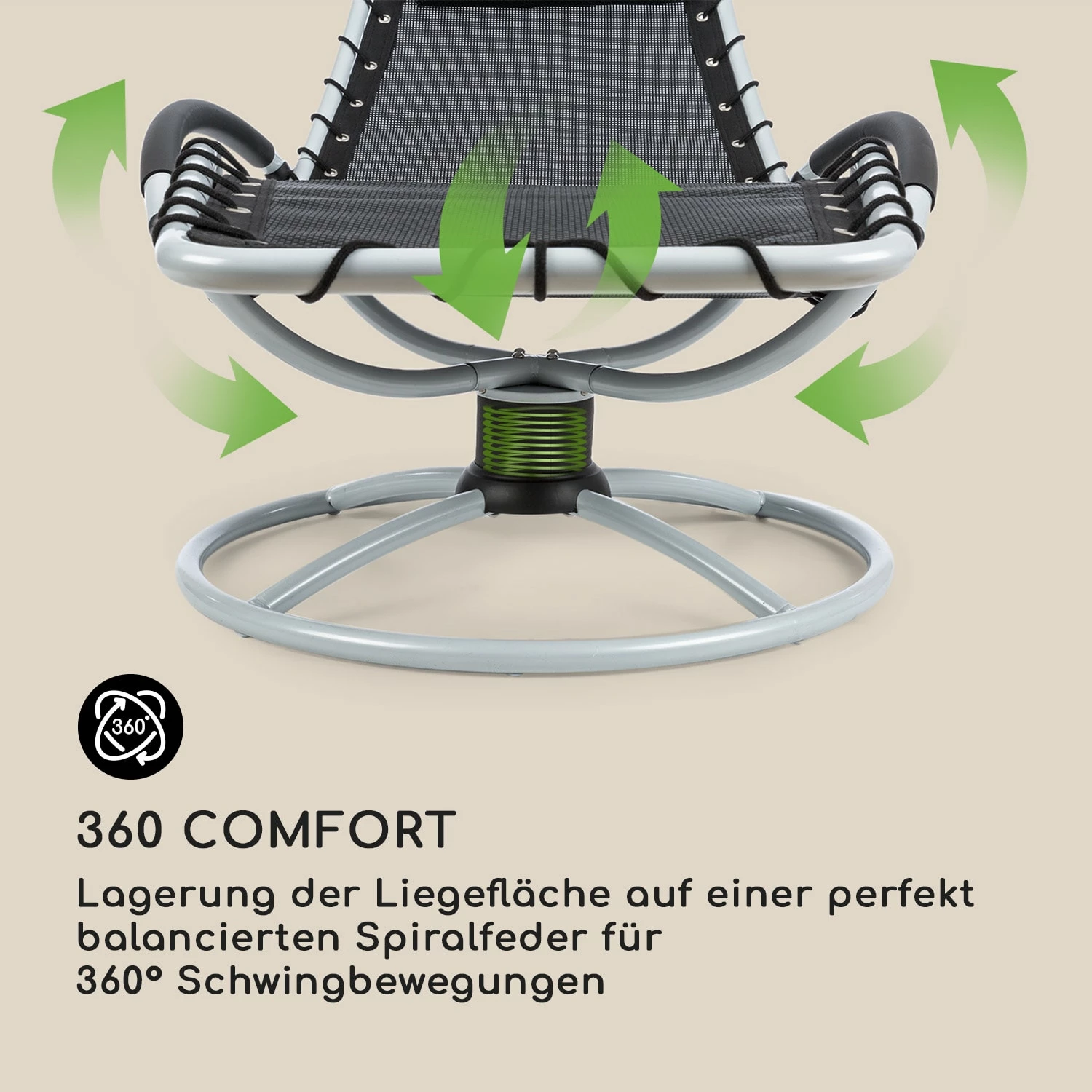 - 360 Comfort: Lagerung der Liegefläche auf einer perfekt balancierten Spiralfeder für 360° Schwingbewegungen