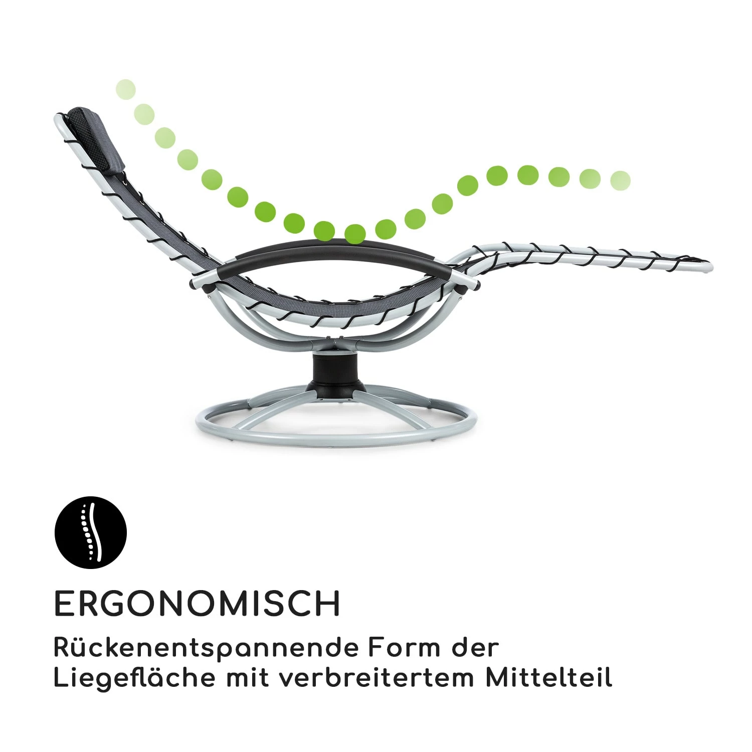- Ergonomisch: Rücken-entspannende Form der Liegefläche mit verbreitertem Mittelteil