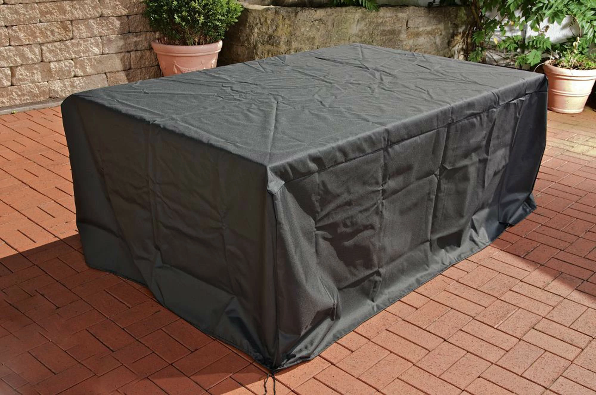 Damit nicht nur Ihre Gartenmöbel lange halten, sondern auch diese Schutzhülle nicht kaputt geht, ist sie aus robustem Oxford-Polyester gefertigt und sehr reißfest. Mit einer Kordel am Saum kann die Abdeckhaube am Möbel fixiert werden, um zu verhindern, dass die durch den Wind weggeweht wird.