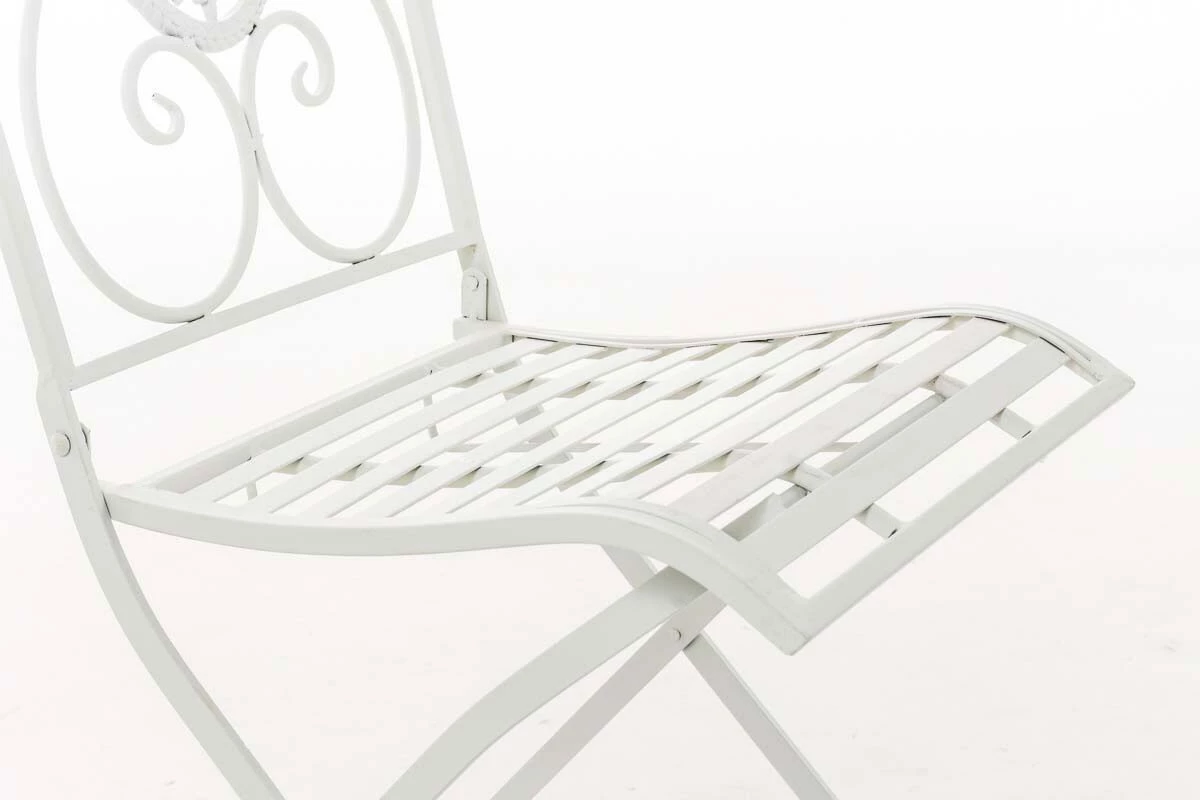 Gemütlich und praktisch zugleich: Die hohe Rückenlehne und die geschwungene Sitzfläche ermöglichen ein bequemes Sitzen. Bei Bedarf kann der Eisenstuhl einfach zusammengeklappt und platzsparend gelagert werden. Das Produkt wurde aus Eisen gefertigt und ist daher extrem stabil. Die Oberfläche ist mit in Handarbeit nachempfundener antiker Patina veredelt.