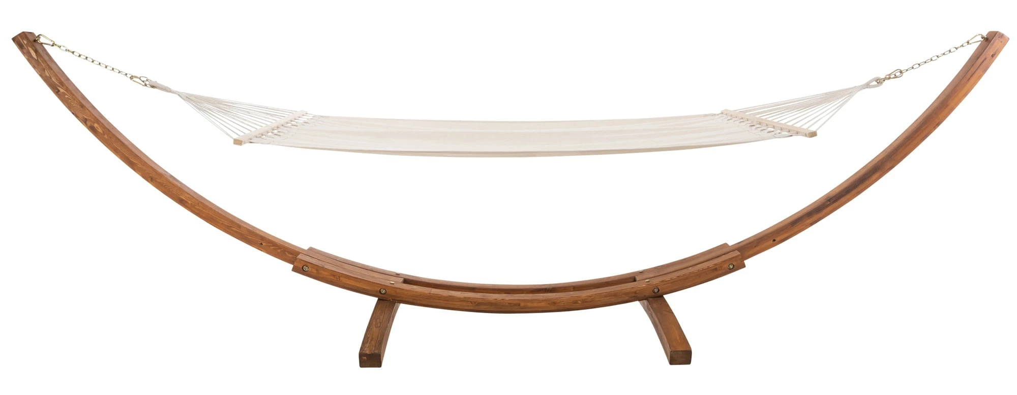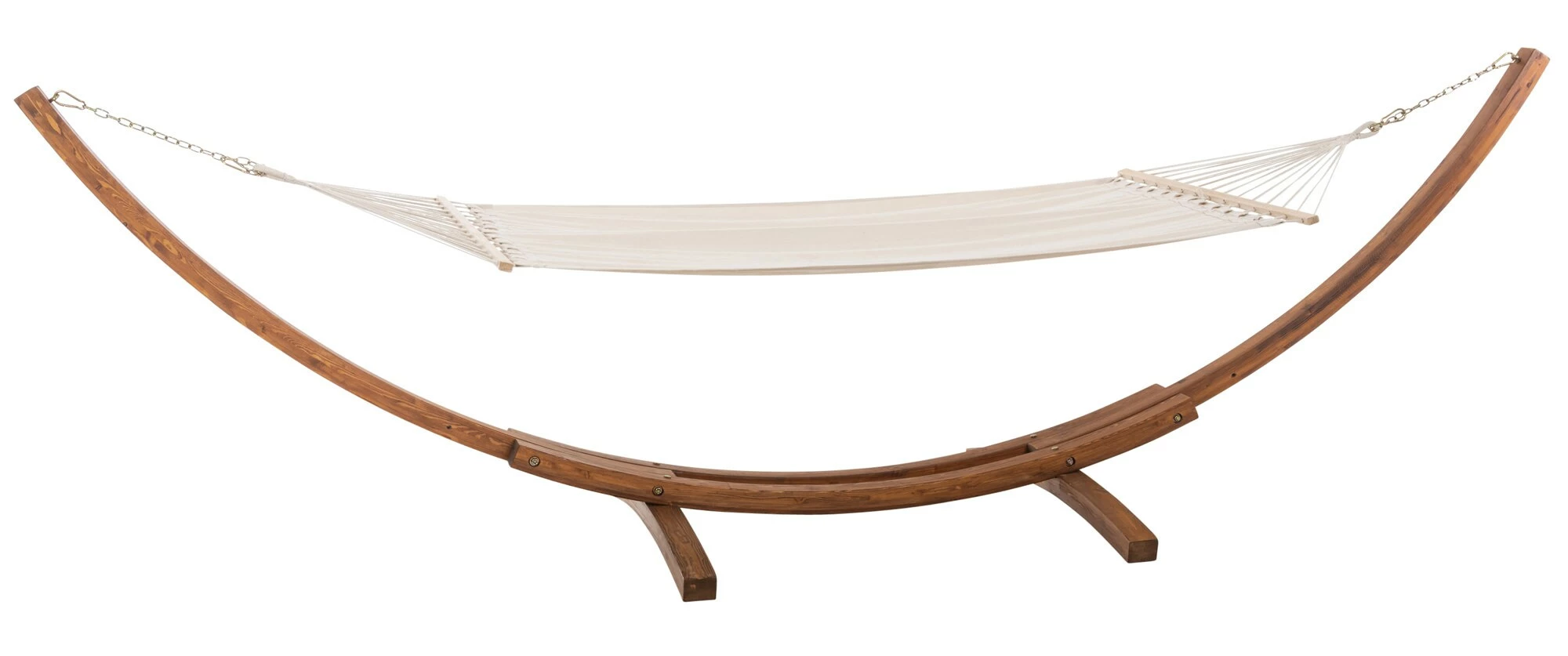 Den Sommer in vollen Zügen genießen, dies geht am besten in einer Hängematte. Die Hängeschaukel ist nicht nur optisch ansprechend, sondern überzeugt auch in Sachen Komfort. Das Design der gebogenen Holzstreben aus Lärchenholz sorgt für höchste Stabilität und hat zudem eine lange Lebensdauer. Alle Ketten und Karabiner sind aus Metall und sind für eine Traglast von 150 kg konzipiert. Durch die Höhenverstellbarkeit der Matte ist für optimalen Liegekomfort gesorgt. Die tolle Farbgebung der verwendeten Materialien rundet den Look bestens ab.