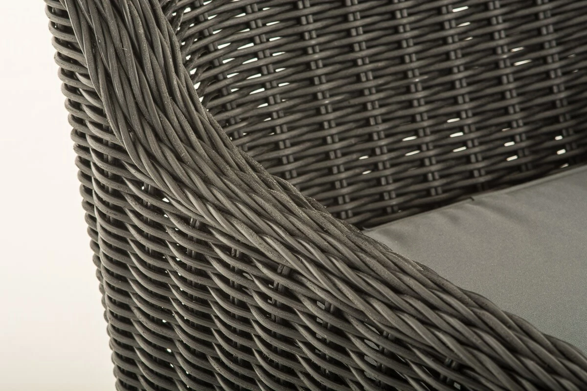 Die Polyrattanfasern sind wasserfest, angenehm pflegeleicht und UV-beständig