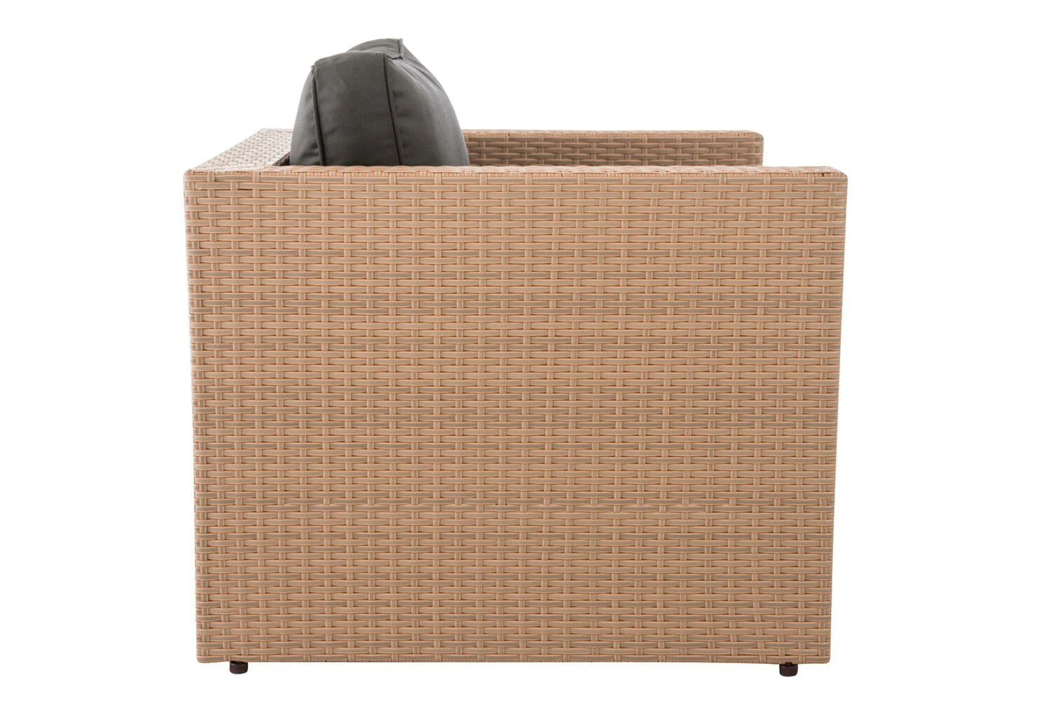 Die Polyrattanfasern sind wasserfest, angenehm pflegeleicht und UV-beständig