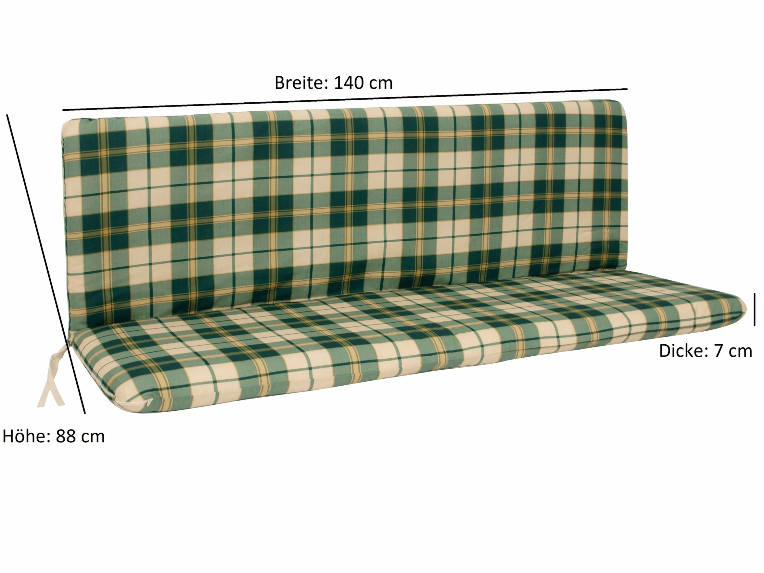 Polsterauflage BOSTON mit Sitz- und Rückenteil für Bank 3-sitzer 138cm, grün/beige kariert.