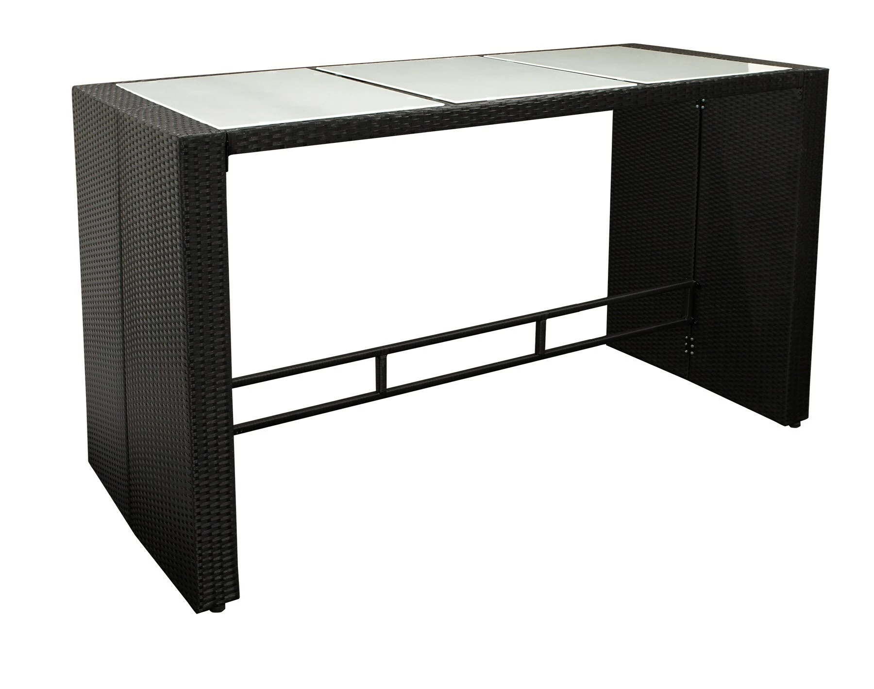 XL – Bartisch DAVOS 185x80cm, Höhe 110cm. Metallgestell mit schwarzer Polyrattan-Bespannung. Tischplatte aus Sicherheitsglas.