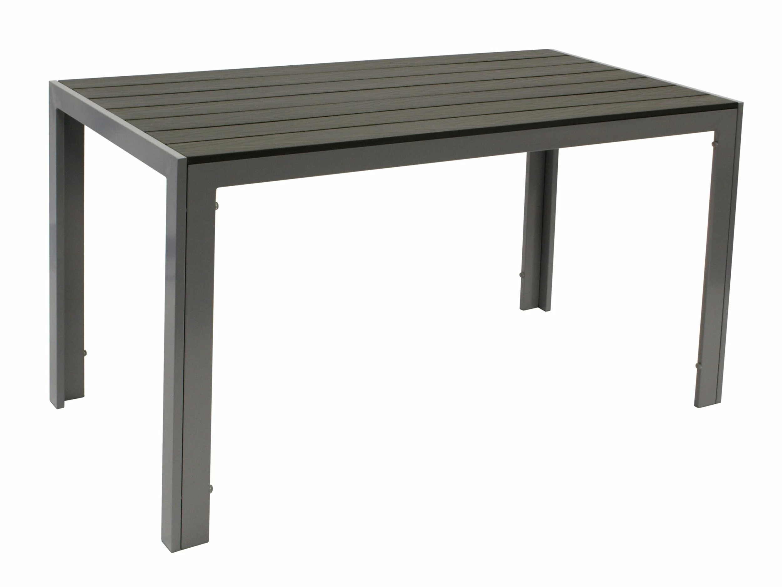 Ebenfalls im Lieferumfang enthalten ist ein robuster Tisch mit Aluminiumgestell und Tischplatte aus wetterfestem Polywood (Kunstholz).