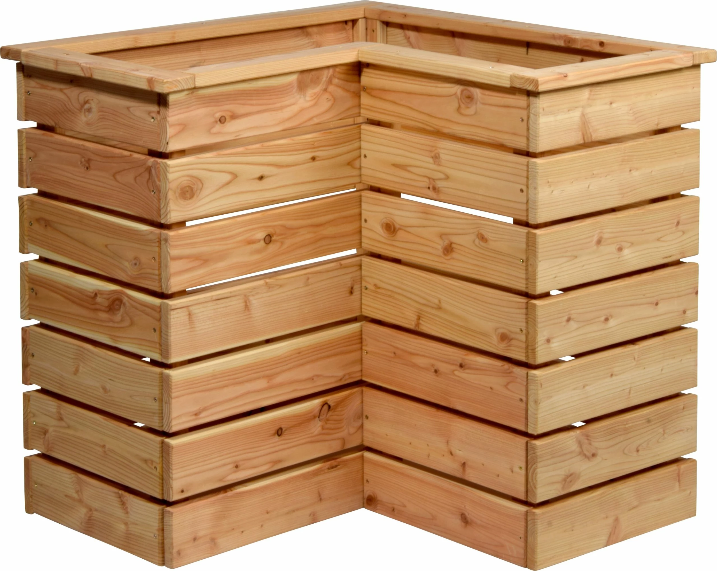 Selbst angebautes Gemüse und Kräuter bedeuten Genuss und Lebensqualität denn Sie bereichern die Küche und bieten Gewissheit über Herkunft und Inhaltstoffe. Mit diesem robusten Eck-Hochbeet ist das Anlegen eines kleinen Gartens auch auf der Terrasse und dem Balkon möglich. Kreativ bepflanzt wird aus dem L-förmigen Pflanzkasten schnell ein dekoratives Gestaltungselement. Die erhöhte Lage des Beets bietet einige Vorteile, wie etwa besseren Schutz vor Schnecken und Unkraut, während die rückenfreundliche Arbeitshöhe die Pflege der Pflanzen erleichtert. Auf der schmalen Leiste rund um das Beet können während der Arbeit zudem Gartenwerkzeuge abgelegt werden. Mit der, im Lieferumfang enthaltenen, Pflanzfolie kann das Tischbeet einfach und schnell bepflanzt werden. Der Pflanzkasten besteht aus FSC®-zertifiziertem Douglasienholz (Pseudotsuga menziesii, Hauptholzart) aus nachhaltiger und umweltfreundlicher Forstwirtschaft und ist wetterfest imprägniert. Die Herstellung in europäischer Produktion erfolgt in Handarbeit mit Fokus auf bester Qualität in der Verarbeitung. Die Außenmaße sind ca. 78 x 78 x 73 cm (L x B x H).