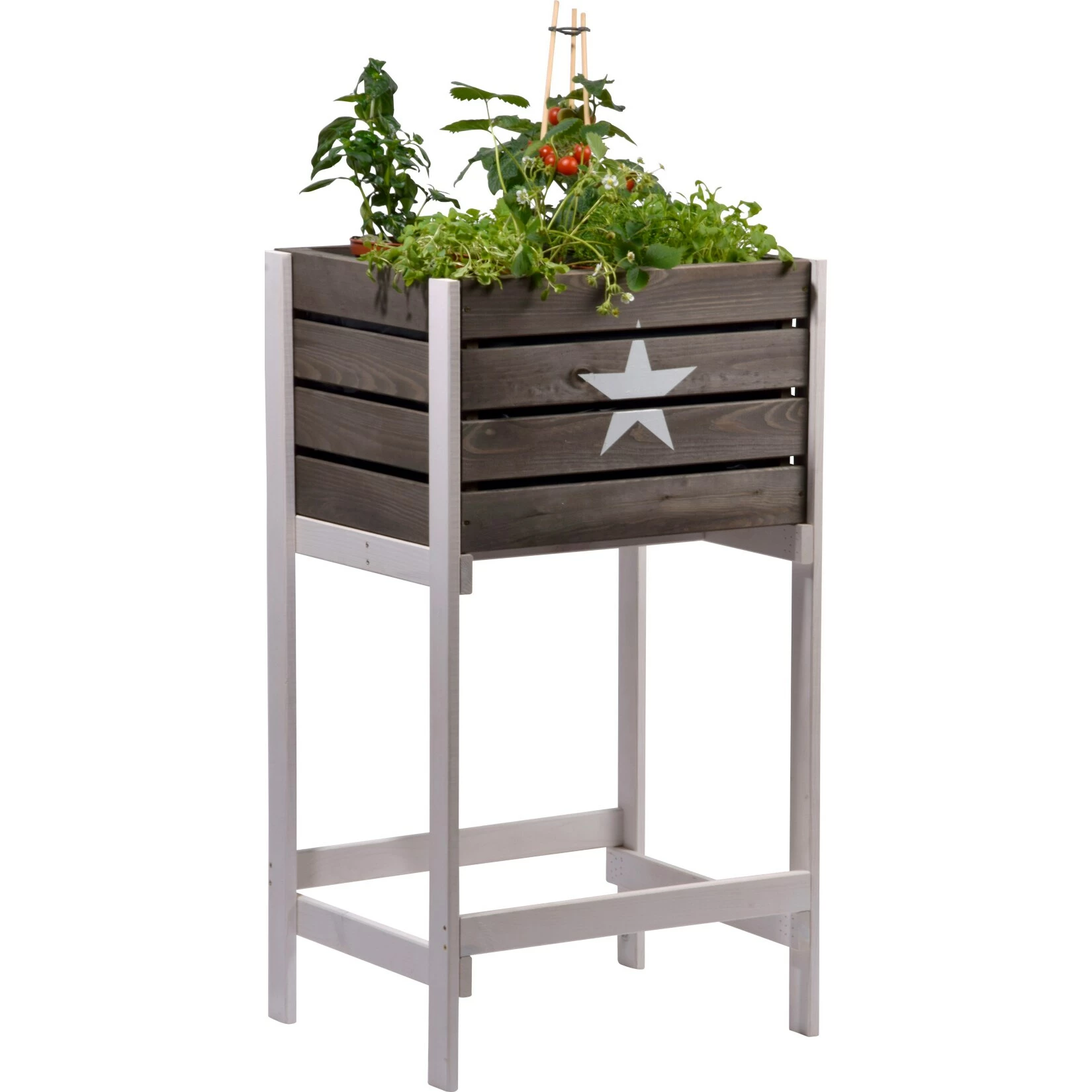 Eigenes Gemüse und Kräuter bedeuten Genuss und Lebensqualität. Sie bereichern die Küche und bieten Gewissheit über Herkunft und Inhaltstoffe. Dieses kleine Hochbeet bietet viele Vorteile beim Anbau von Küchenpflanzen. Es ist platzsparend, hat eine angenehme Arbeitshöhe, die Rücken und Knie schont, und macht auch optisch etwas her. Kreativ bepflanzt ist dieses Kräuterbeet ein dekoratives Gestaltungselement, dessen entnehmbarer Pflanzkasten eine vielfältige Begrünung des Gartens, der Terrasse und des Balkons ermöglicht. Dank der integrierten Pflanzfolie ist das Bepflanzen des Beetes kinderleicht. Der Pflanzkasten hat eine Wandstärke von ca. 1 cm, ist innen ca. 41 x 37 cm groß und hat eine Füllhöhe von ca. 28 cm. So kann er mit ca. 43 Liter Blumenerde befüllt werden und bietet eine Anbaufläche von etwa 0,15 m². Das Blumenbeet besteht aus wetterfest lasiertem Kiefernholz (Hauptholzart) aus nachhaltiger und umweltfreundlicher europäischer Forstwirtschaft.