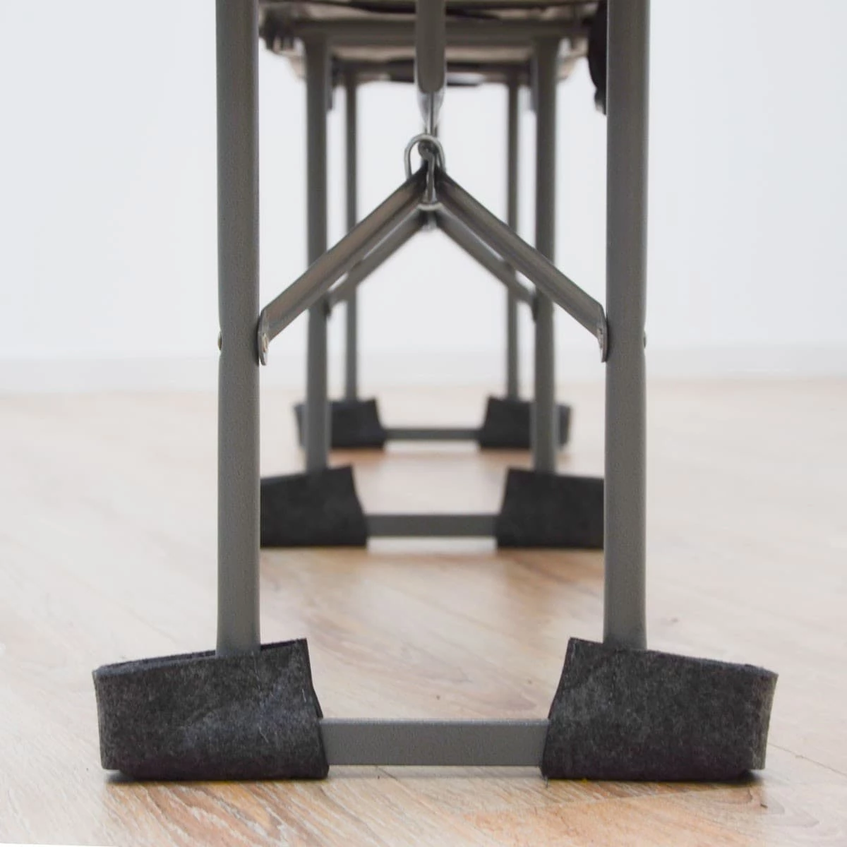 Im Garten, auf Balkon oder Terrasse: Die robusten Bodenschoner passen zu allen traditionellen Festzeltgarnituren mit Bügel – ihr klassisches Anthrazit lässt sich mit jeder Deko kombinieren. Die praktischen Überzieher mit Klettverschluss schützen Deinen Fußboden nicht nur vor Kratzern, sondern auch vor Farb-Abrieb und Rostflecken.