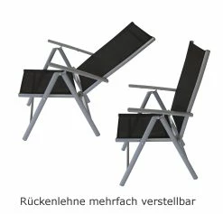 DEGAMO Garnitur SORANO 5-teilig Mit Tisch 70x125cm, Aluminium + Polywood + Kunstgewebe Schwarz