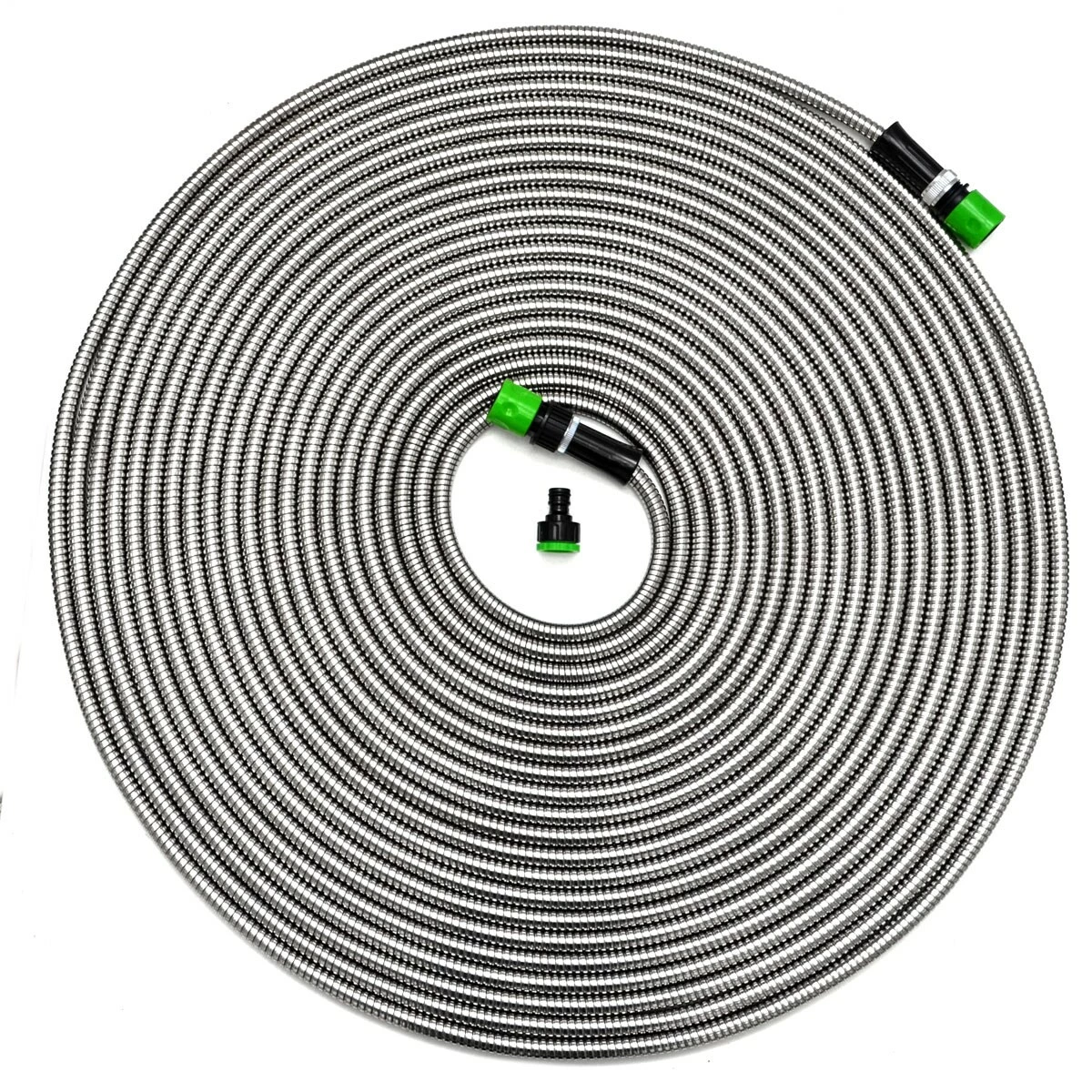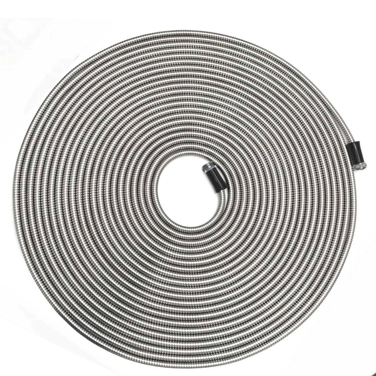 Die rostfreie Ummantelung aus 304 Edelstahl macht den Wasserschlauch extrem robust und strapazierfähig: Kein Knicken, Abdrücken oder Platzen – auch Dornen, Steine oder Äste haben keine Chance. Der stabile Mantel hält sogar Hundebisse aus!