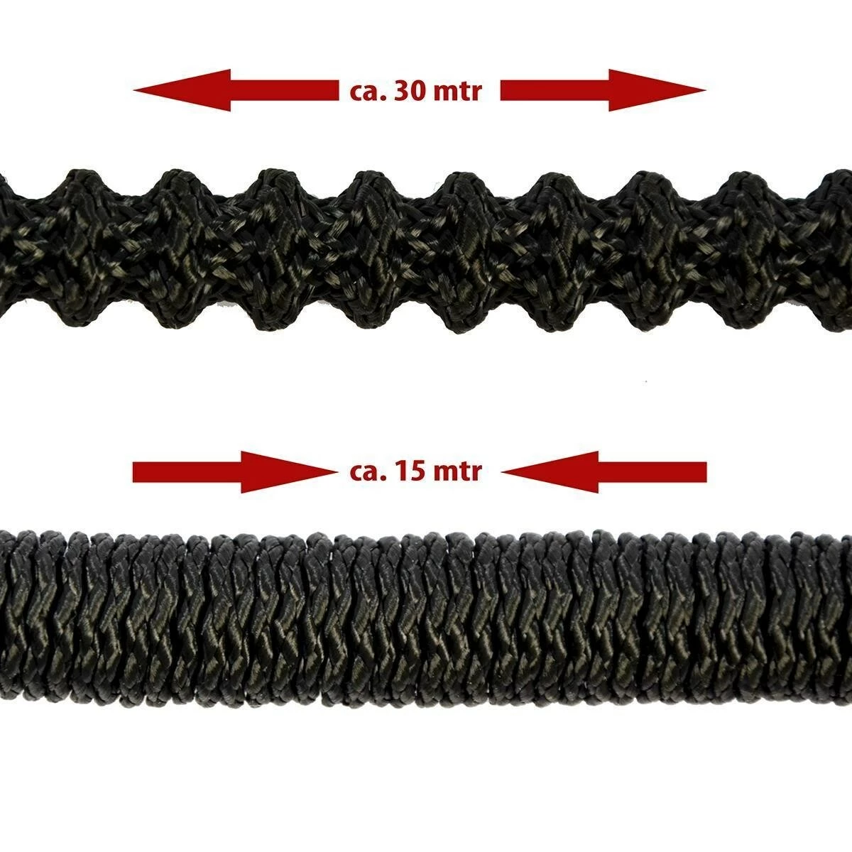 – Der flexible Wasserschlauch dehnt sich unter Wasserdruck um das dreifache von ca. 10m – 30m aus und zieht sich beim entleeren wieder in die Urschsrpüngliche Größe zusammen.