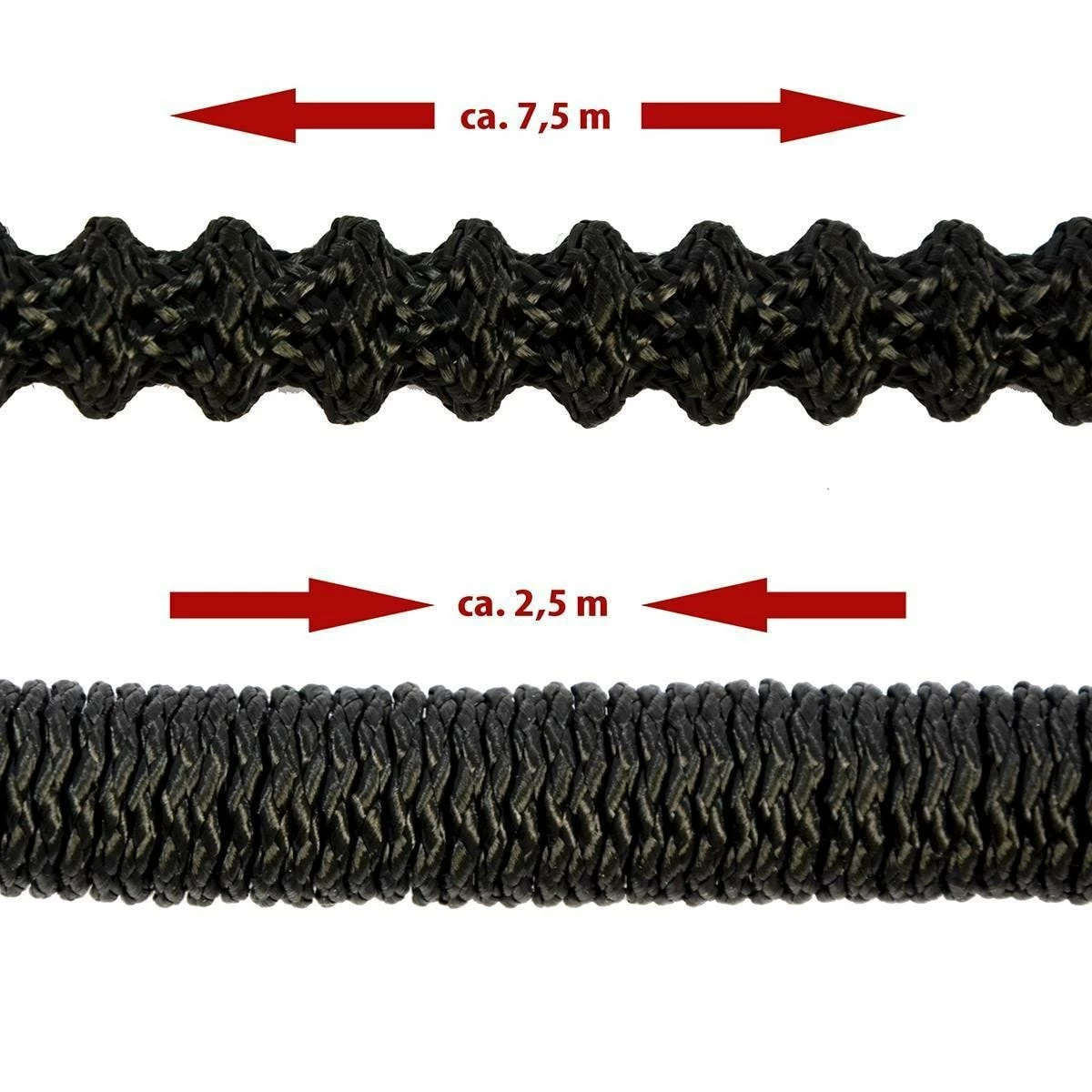 EINFACHE HANDHABUNG: Der flexible, erweiterbare, selbstentleerende Wasserschlauch dehnt sich unter Wasserdruck um das Dreifache von ca. 2,5 m bis ca. 7,5 m aus und zieht sich beim Entleeren in die ursprüngliche Größe zusammen