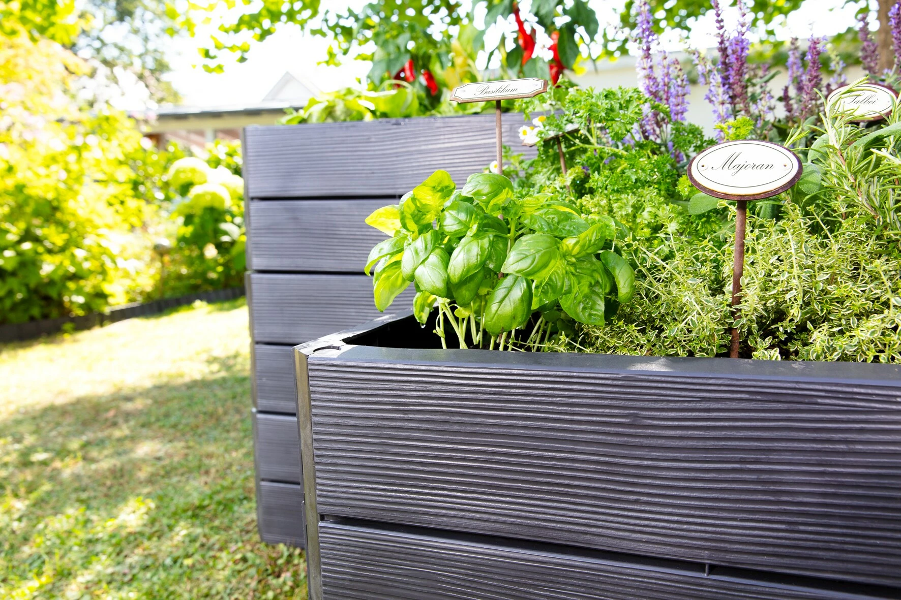 Das ERGO Hochbeet überzeugt ebenfalls als Blickfang in Ihrem Garten durch die dekorative Oberfläche in 3D-Holzoptik mit originalgetreuer Struktur, moderner Farbgebung, Langlebigkeit und UV-Stabilität