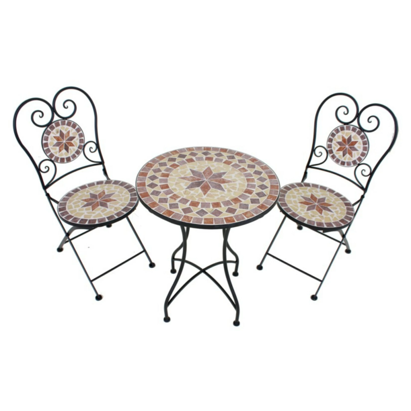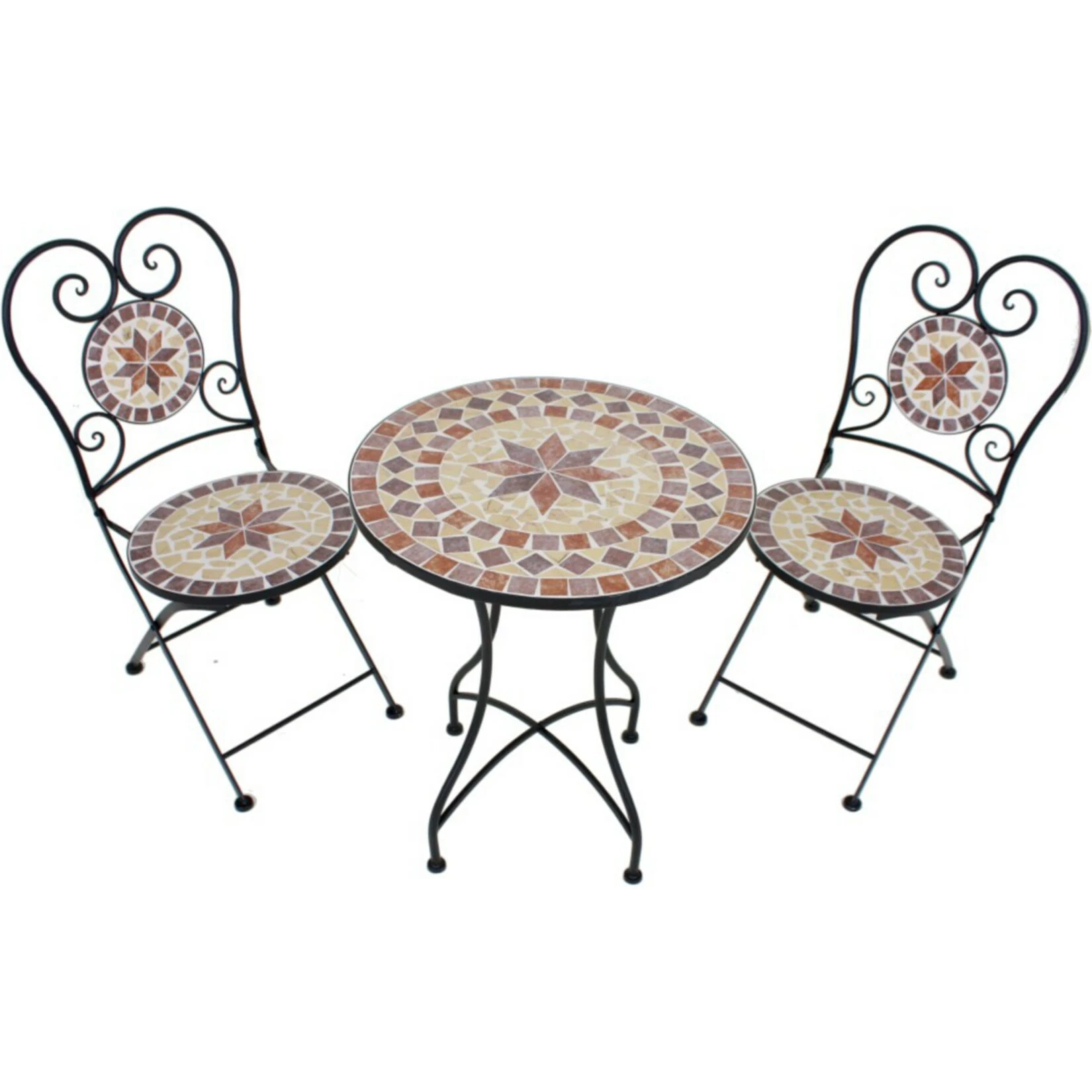 Garden Pleasure 3tlg. Balkon Set Mosaik Garten Terrasse Metall Stuhl Tisch Beistelltisch Stühle