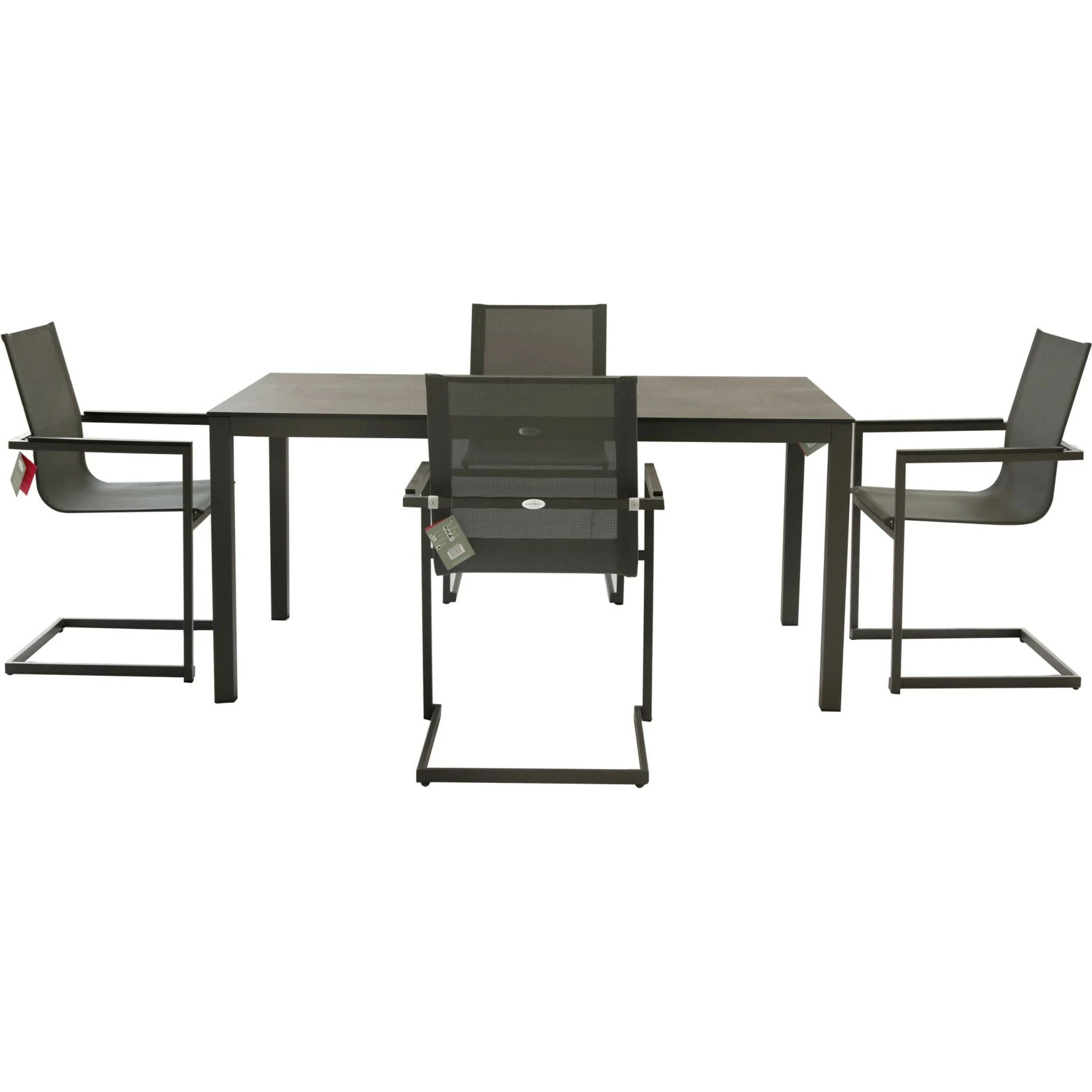 Tisch SOPHIA Material: Alu / Kunststoff HPL anthrazit Maße ca.: L158xB90xH74 cm Sitzhöhe ca.: Alurohr: 50x50x1,5 / 50x25x1,2 cm Tischplatte 10mm Kartonmass ca. LxBxH: Marke: Garden Pleasure Gewicht netto/brutto ca.: 26 kg / 30,8 kg Herstellungsland: CHINA