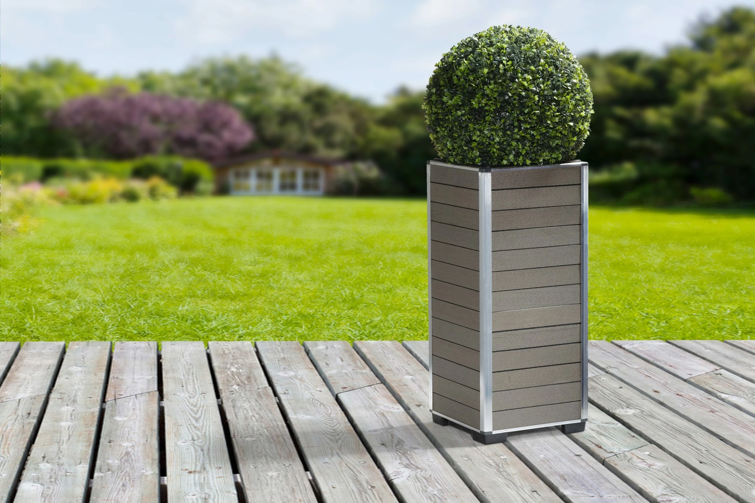 Das Gartenfreude Pflanzgefäß setzt dekorative Akzente im Innen- und Außenbereich. Das Gartenfreude Pflanzgefäß ist hochwertig aus WPC gefertigt und mit Hilfe einer schönen Alukante abgerundet. Wetterfest, UV-beständig und mit wassserdichtem Kunststoffeinsatz ausgestattet. Einfaches Abwischen genügt und schon sieht das Pflanzgefäß wie neu aus. WPC ist splitterfrei und es ist keine Nachbehandlung notwendig. Resistent gegen Insekten, UV-beständig sowie witterungsfest. Ein nachhaltiger und ökologischer Anbau ist durch den schnell nachwachsenden Rohstoff Bambus gewährleistet. Gelegentlich mit Seifenwasser reinigen, bei hartnäckigen Verschmutzungen schmutz- und fettlösende oder spezielle WPC Reinigungsmittel verwenden. Bei Bedarf können die WPC-Dielen mit Lasuren in der Farbe auch wieder aufgefrischt werden.