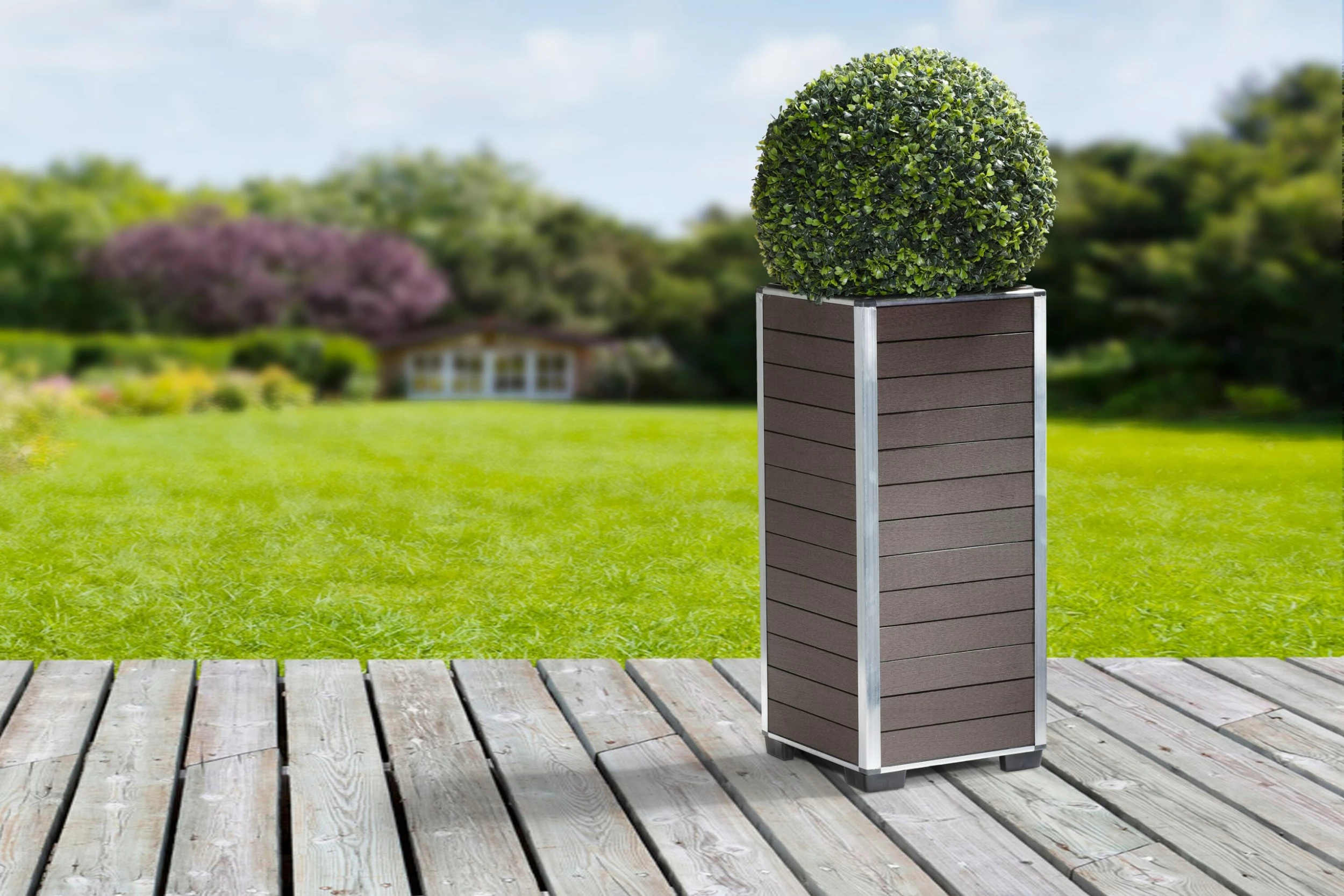 Das Gartenfreude Pflanzgefäß setzt dekorative Akzente im Innen- und Außenbereich. Das Gartenfreude Pflanzgefäß ist hochwertig aus WPC gefertigt und mit Hilfe einer schönen Alukante abgerundet. Wetterfest, UV-beständig und mit wassserdichtem Kunststoffeinsatz ausgestattet. Einfaches Abwischen genügt und schon sieht das Pflanzgefäß wie neu aus. WPC ist splitterfrei und es ist keine Nachbehandlung notwendig. Resistent gegen Insekten, UV-beständig sowie witterungsfest. Ein nachhaltiger und ökologischer Anbau ist durch den schnell nachwachsenden Rohstoff Bambus gewährleistet. Gelegentlich mit Seifenwasser reinigen, bei hartnäckigen Verschmutzungen schmutz- und fettlösende oder spezielle WPC Reinigungsmittel verwenden. Bei Bedarf können die WPC-Dielen mit Lasuren in der Farbe auch wieder aufgefrischt werden.