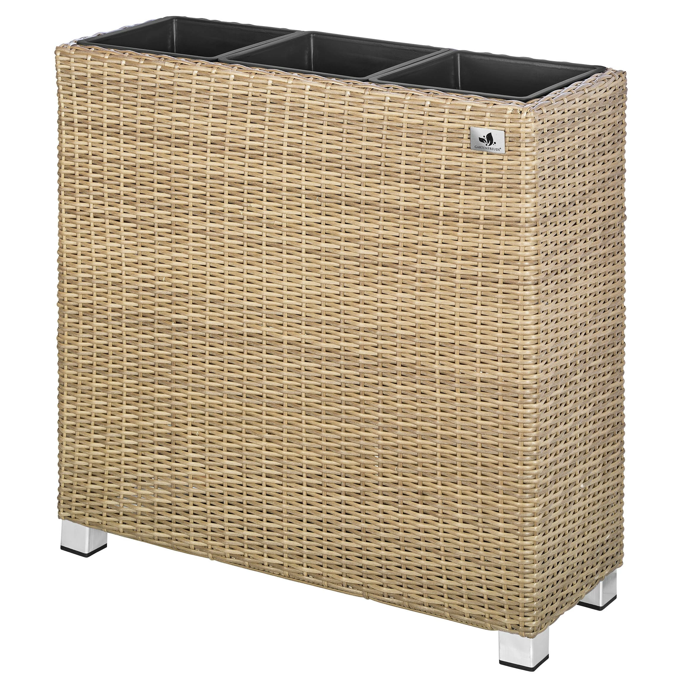 Raumteiler Pflanzkübel Polyrattan 76x26x73cm, 3x Kunststoff-Einsätze