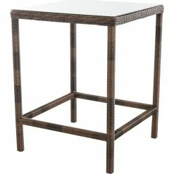 CLP Polyrattan Tisch Alia 5mm I Gartentisch Rundrattan I Bartisch Mit Glasplatte I Gartenmöbel