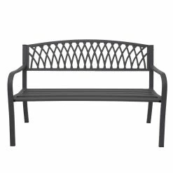 Gartenbank MCW-F45, Bank Parkbank Sitzbank, 2-Sitzer Pulverbeschichteter Stahl ~ Schwarz