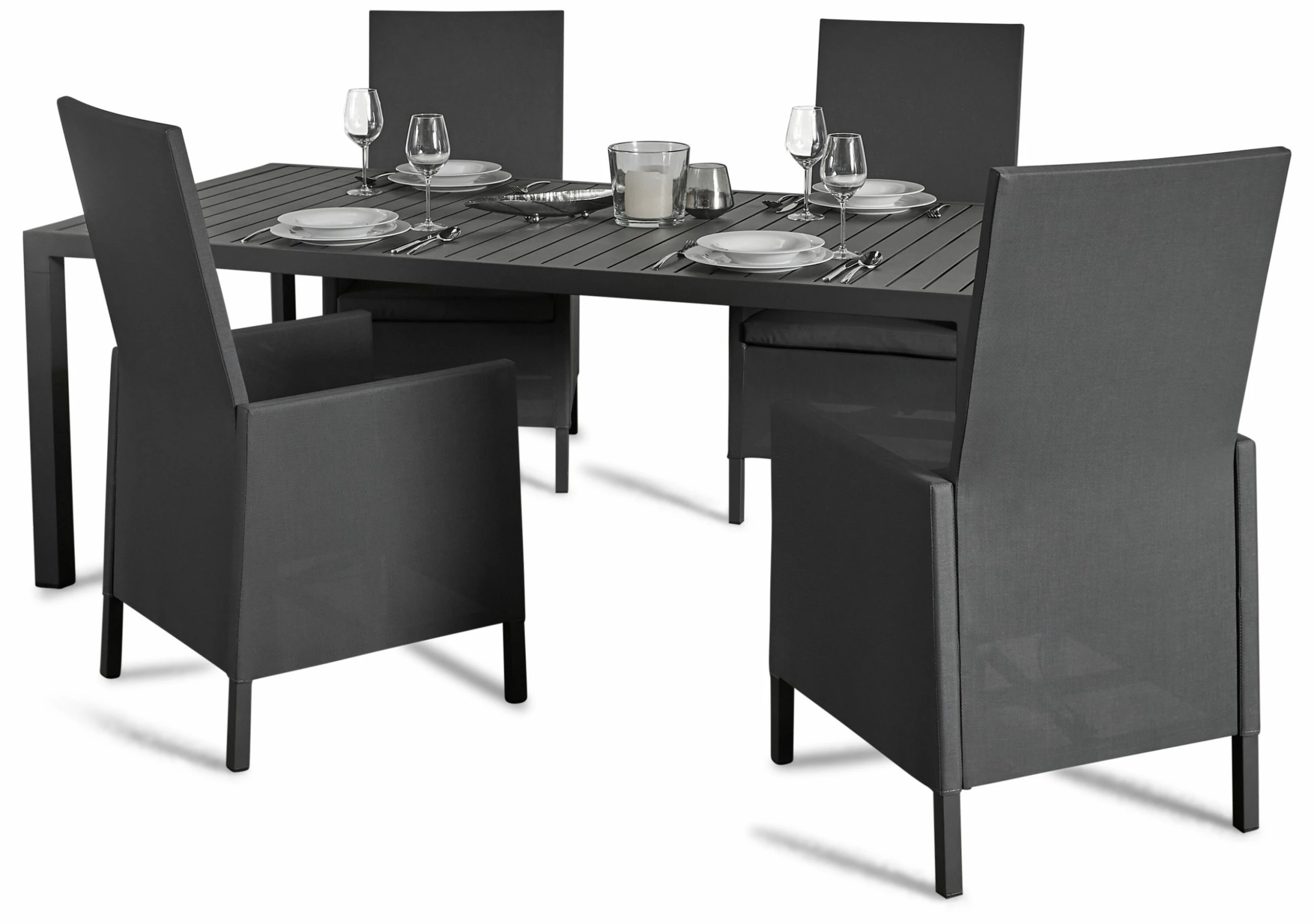 Modernes Dinnerset bestehend aus vier Hochlehnern und einem Tisch.