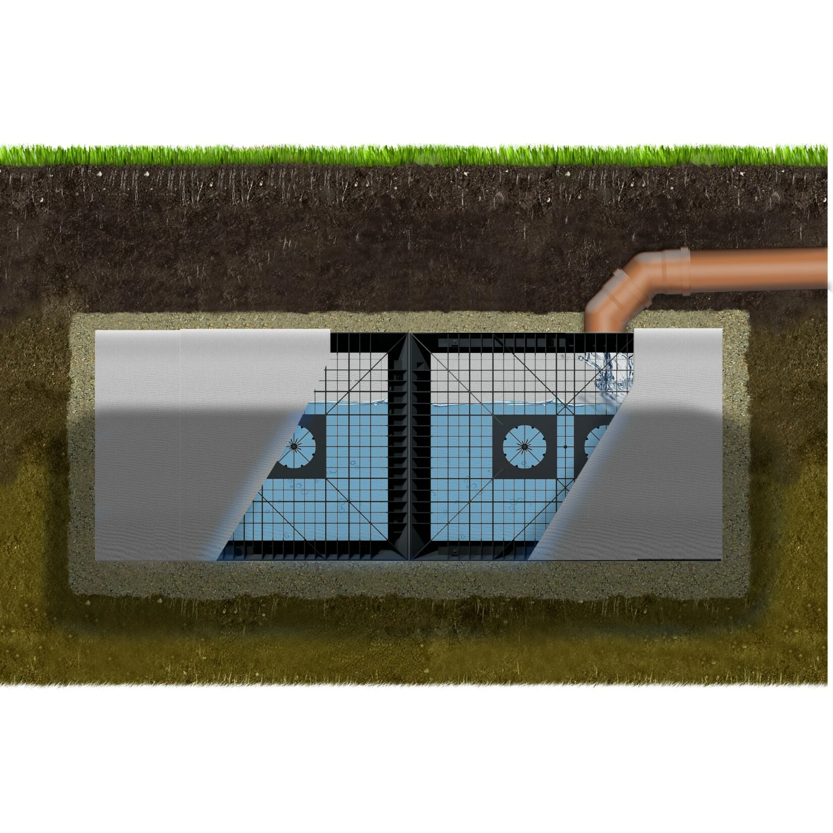 - inklusive 10 Sickerquadern 280 l und 40 m² Geotextil