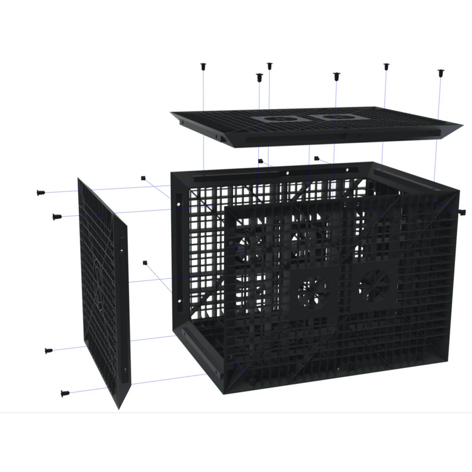 - Der Sickerquader 280 l ist ein montagefreundlicher Bausatz und besteht 6 Seitenflächen inklusive ausgeformten Montagepins.