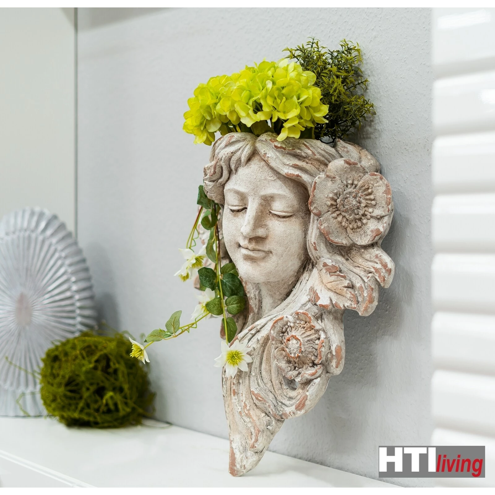 Verleihen Sie mit den Pflanzgefäßen und Wandkonsolen der Serie Apollon Ihrem Zuhause antiken Charme. Ob an griechische Gottheiten erinnernde Büsten, in Form von anatomischen und architektonischen Elementen – Ihre Pflanzen und dekorativen Wohnaccessoires werden kunstvoll in Szene gesetzt. Abnutzungs- und Gebrauchsspuren sind an diesen Artikeln gewollt und gehören zum Stil. Jeder Artikel ist ein Unikat und kann in Form und Farbe abweichen. Maße 46 x 58 x 23 cm (BxHxT)
