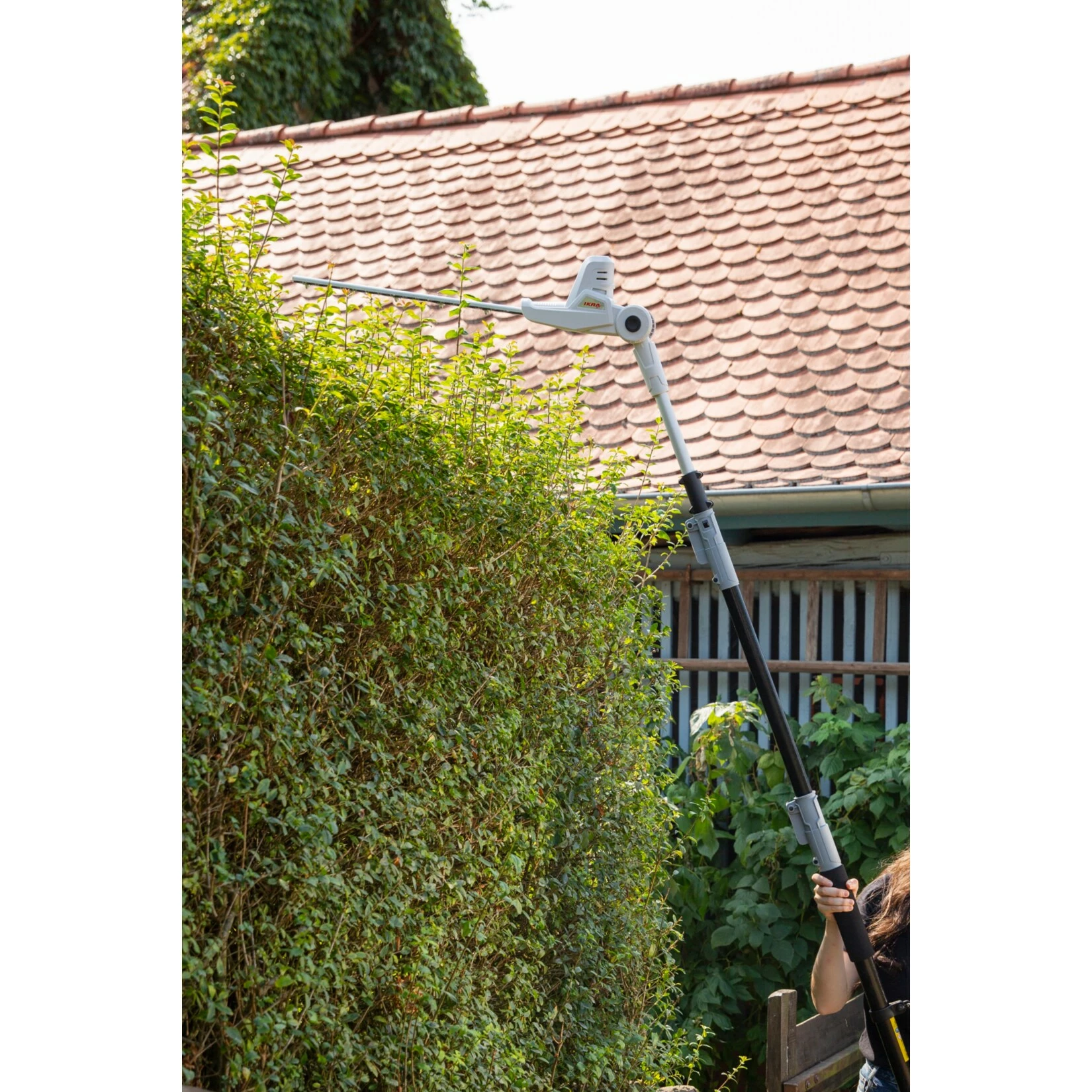 IKRA Akku Teleskop Heckenschneider ICPH 2040 (20V / 2,0 Ah) zum Schneiden von hohen Hecken, großen Büschen und Sträuchern ohne Leiter und Gerüst –
