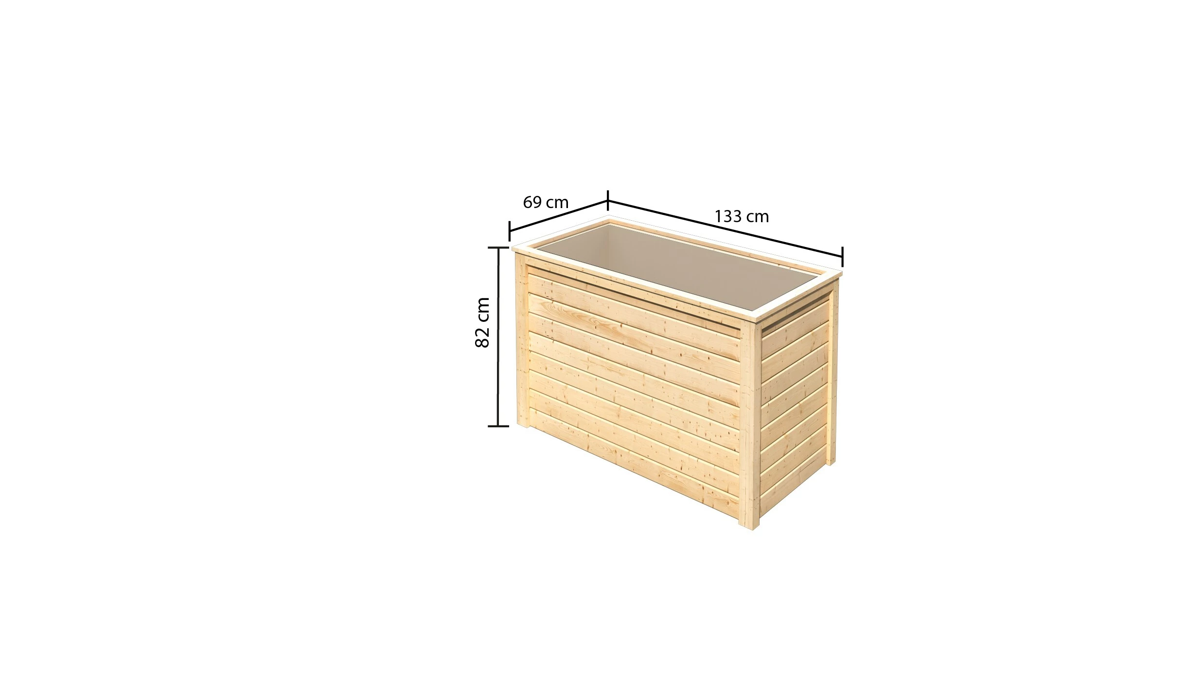 Durch dieses Hochbeet bringen Sie das Gärtnern und den Gemüseanbau auf ein ganz neues Level. Eine Höhe von rückenschonenden 82 cm sorgt für Entspannung beim Pflanzen. Das Hochbeet hat eine Wandstärke von 19 mm und ist aus nordische Fichte gefertigt. Eine innenliegende Kunststofffolie wirkt sich verlängernd auf die Lebensdauer des Hochbeets aus, da sie feuchtigkeitshemmend ist.