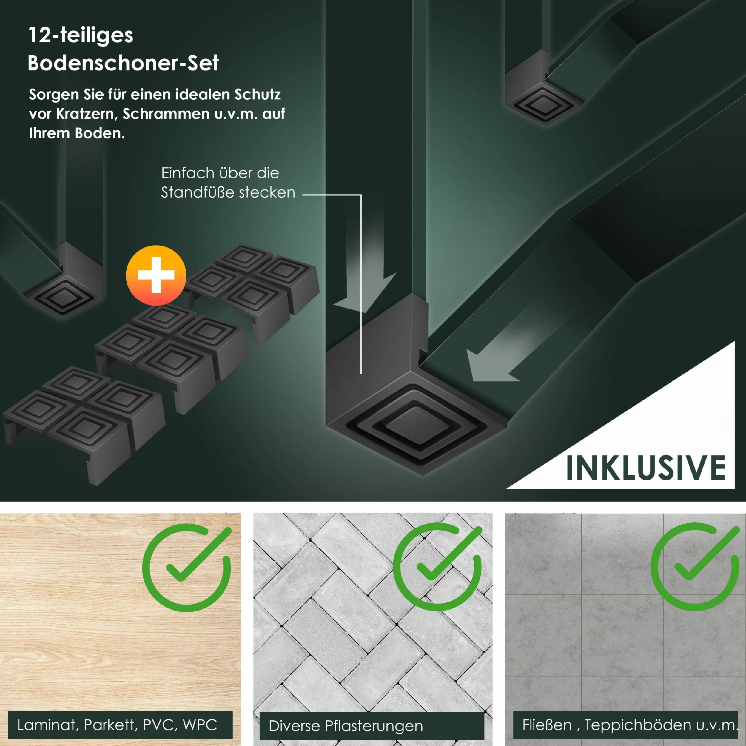 Die Garnitur lässt sich schnell auf- und abbauen und ist daher einfach zu transportieren und verstauen.