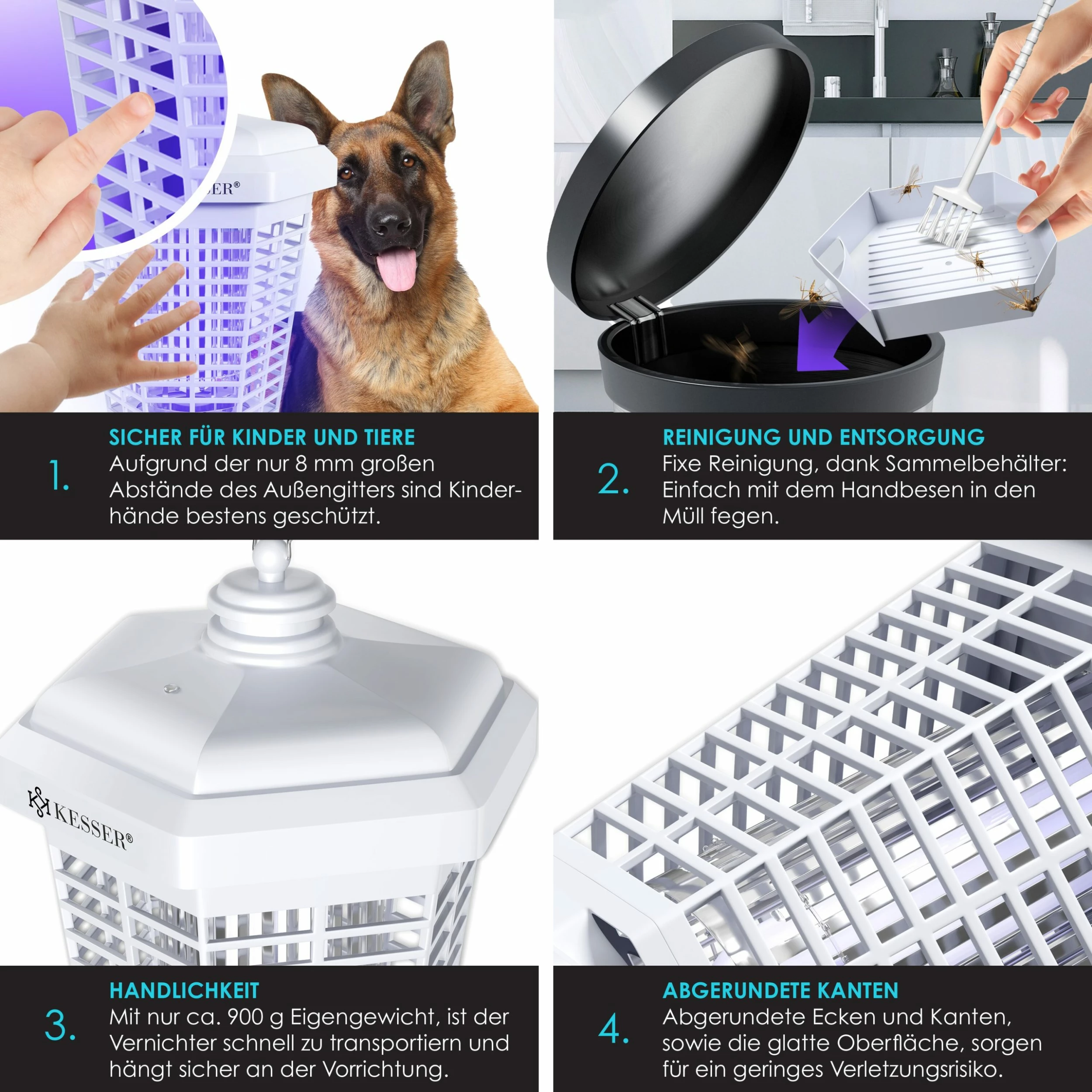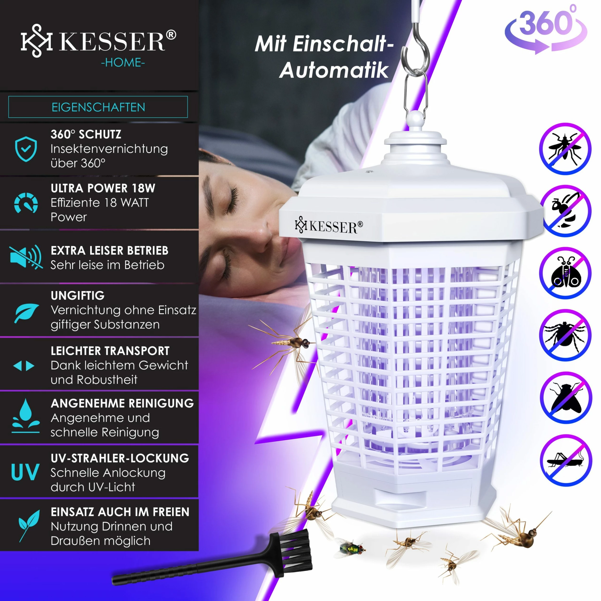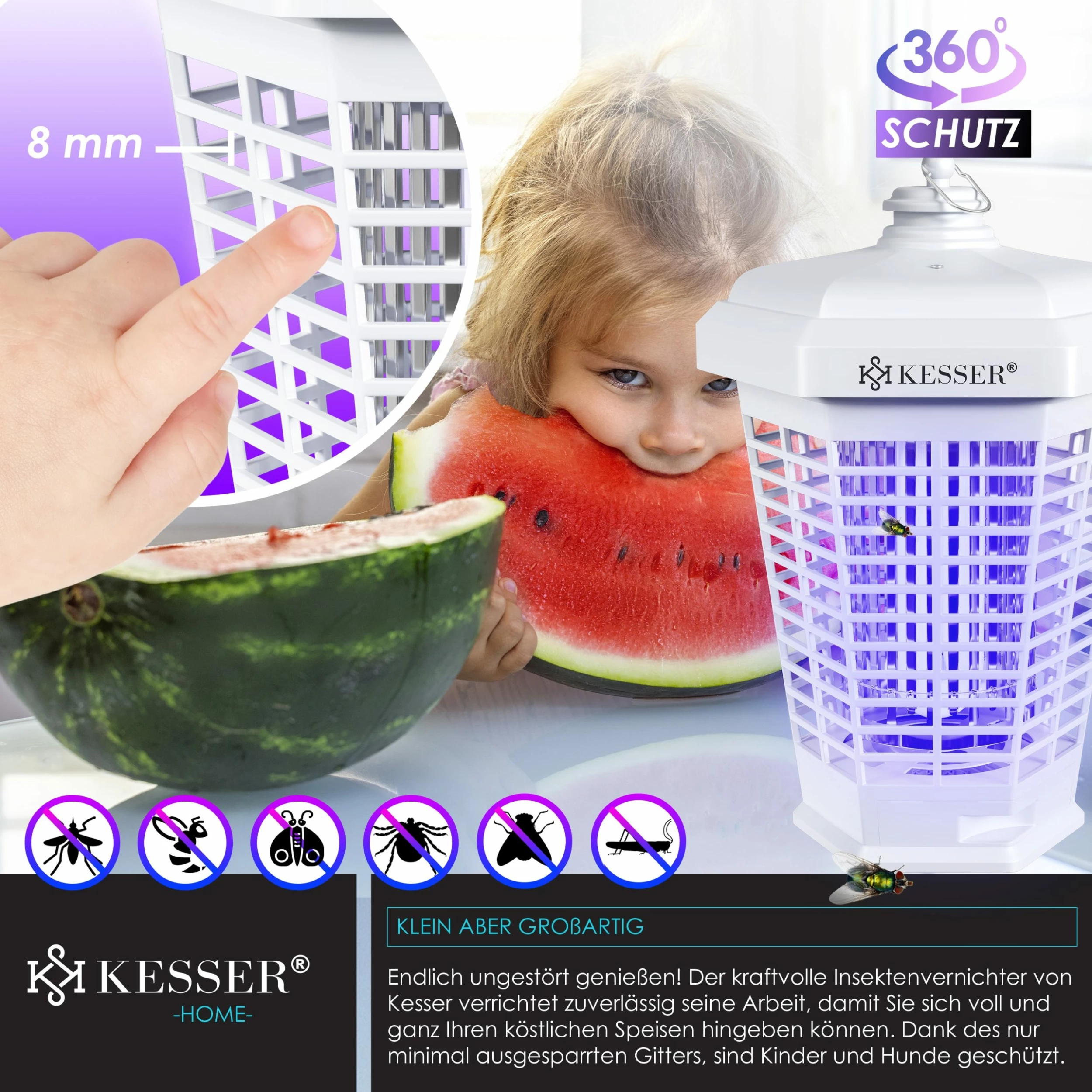 KESSER Insektenvernichter mit einem 360° Schutz, schnelle anlocken durch UV-Strahlung, extrem leise und frei von giftigen Substanzen, sicher für Kinder und Haustiere, Einschaltautomatik, leichter Transport dank geringem Gewicht, angenehme Reinigung
