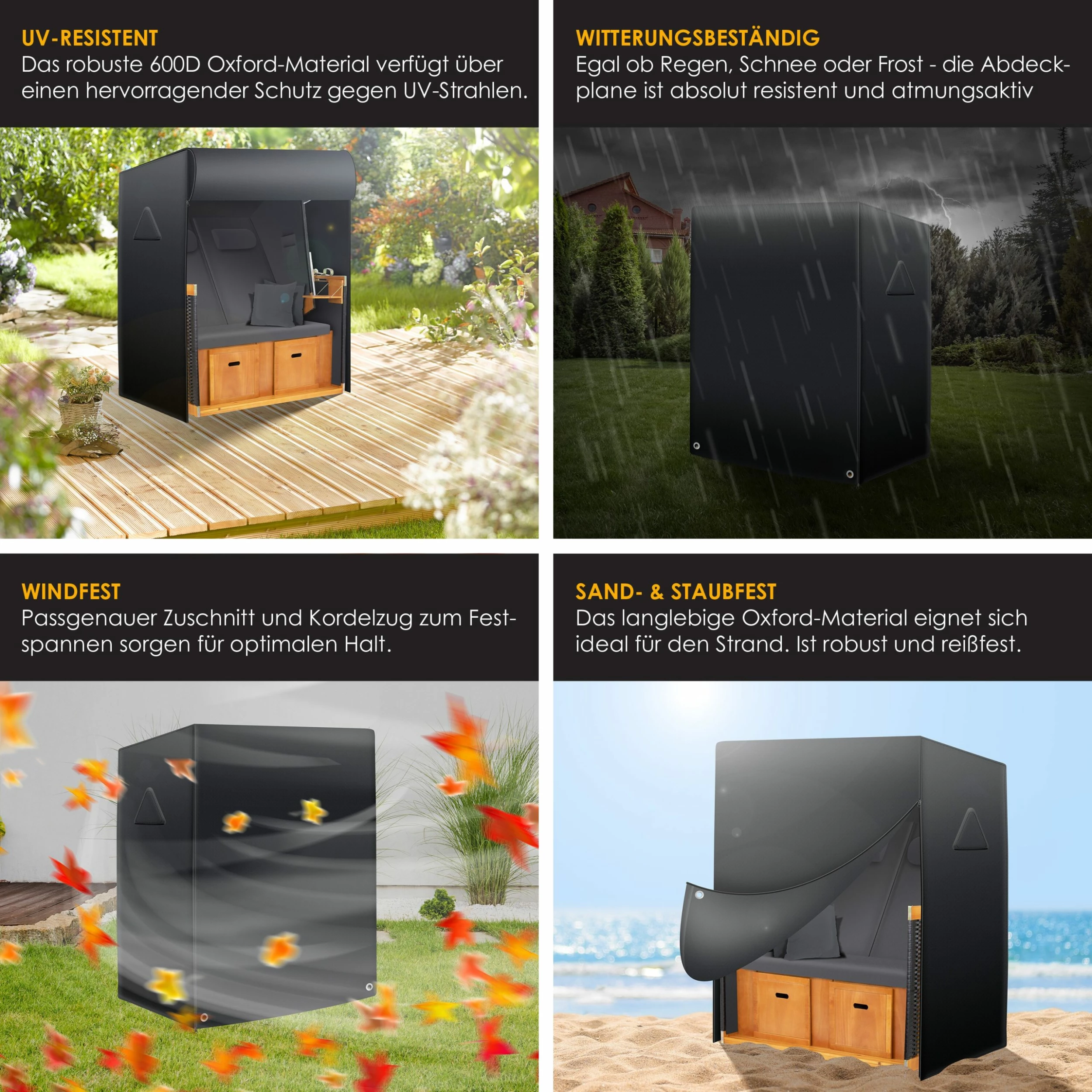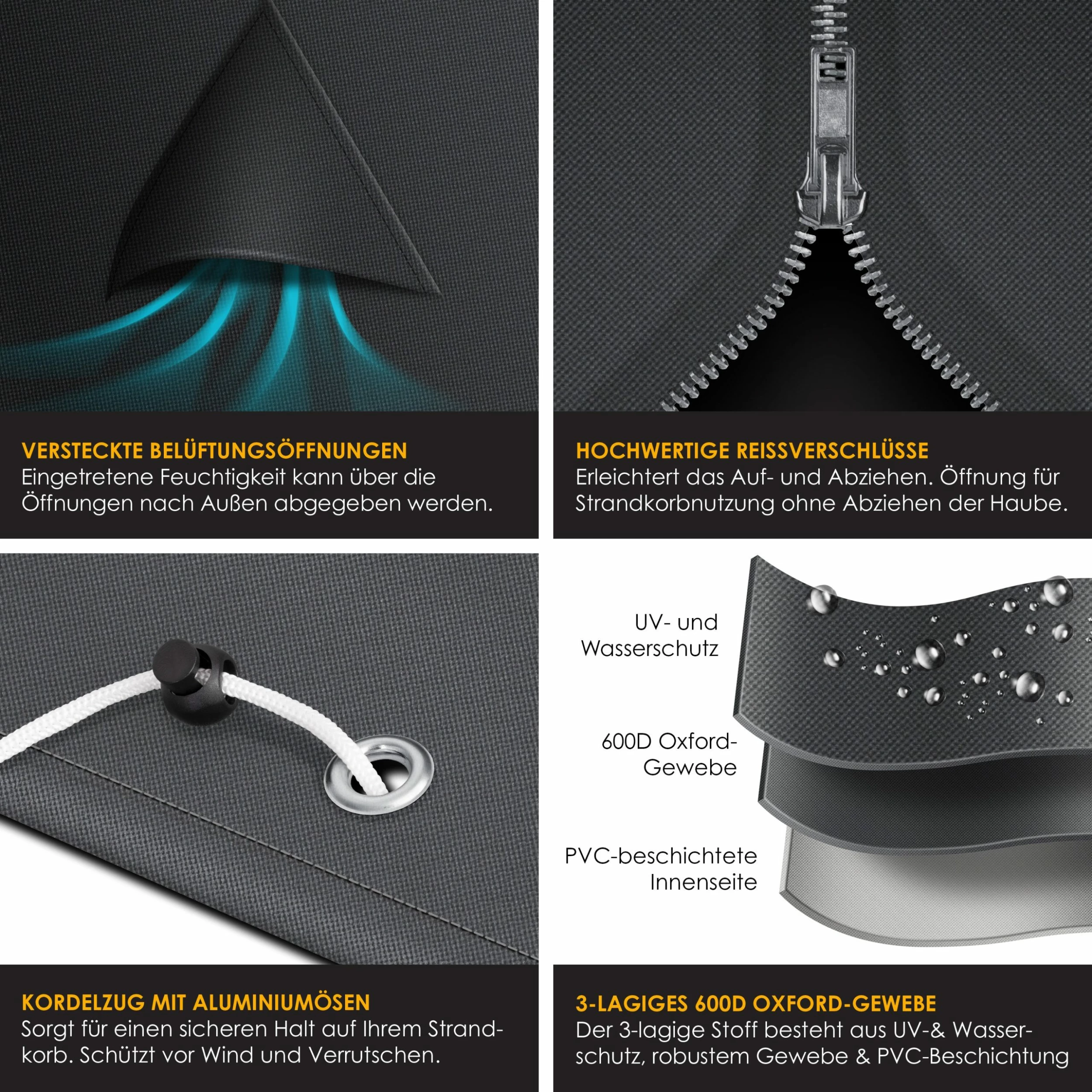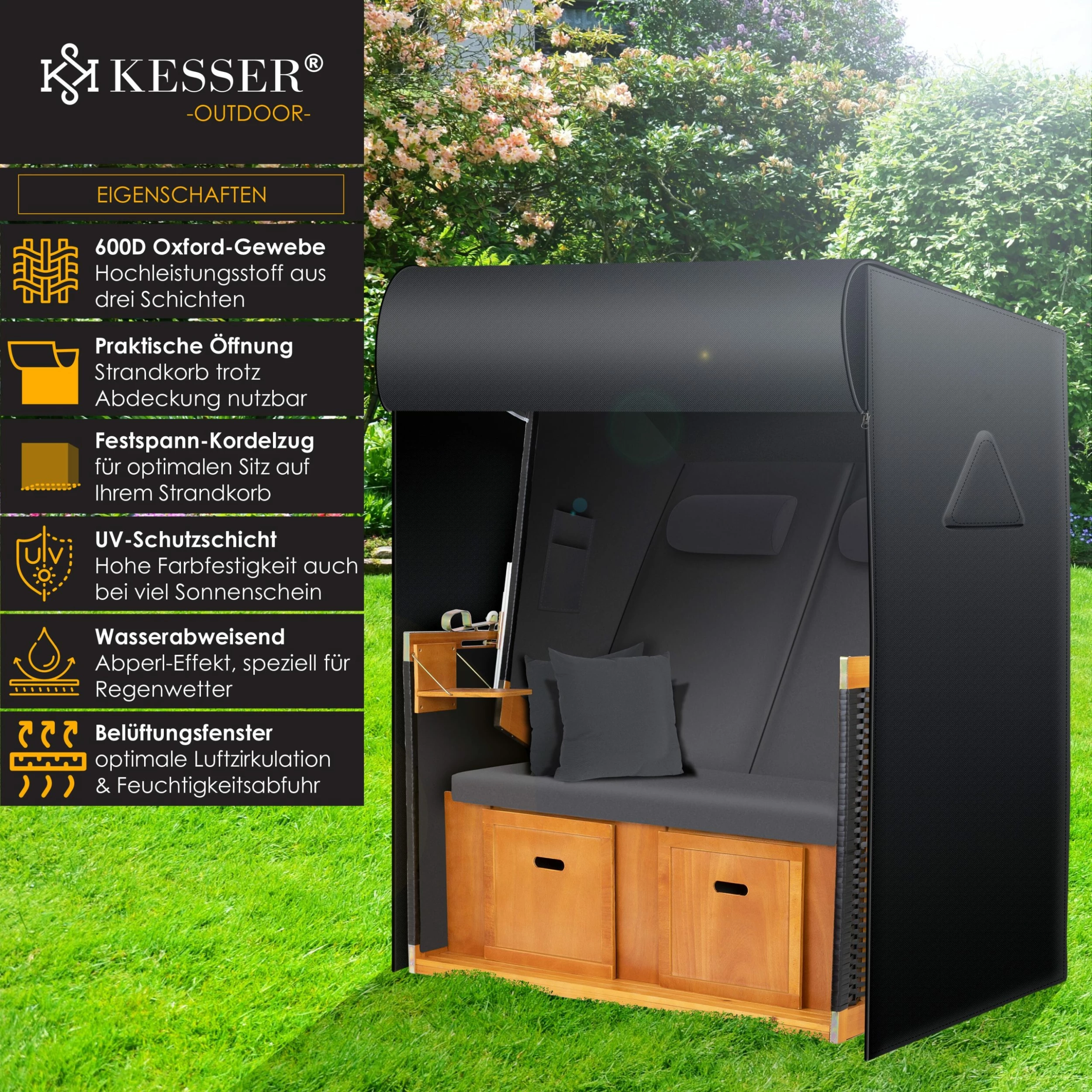 KESSER Strandkorbabdeckung, nutzbar trotz Abdeckung, optimale Luftzirkulation und Feuchtigkeitsabfuhr dank Belüftungsfenster, UV-Schutzschicht und wasserabweisend, Festspann-Kordelzug für optimalen Sitz