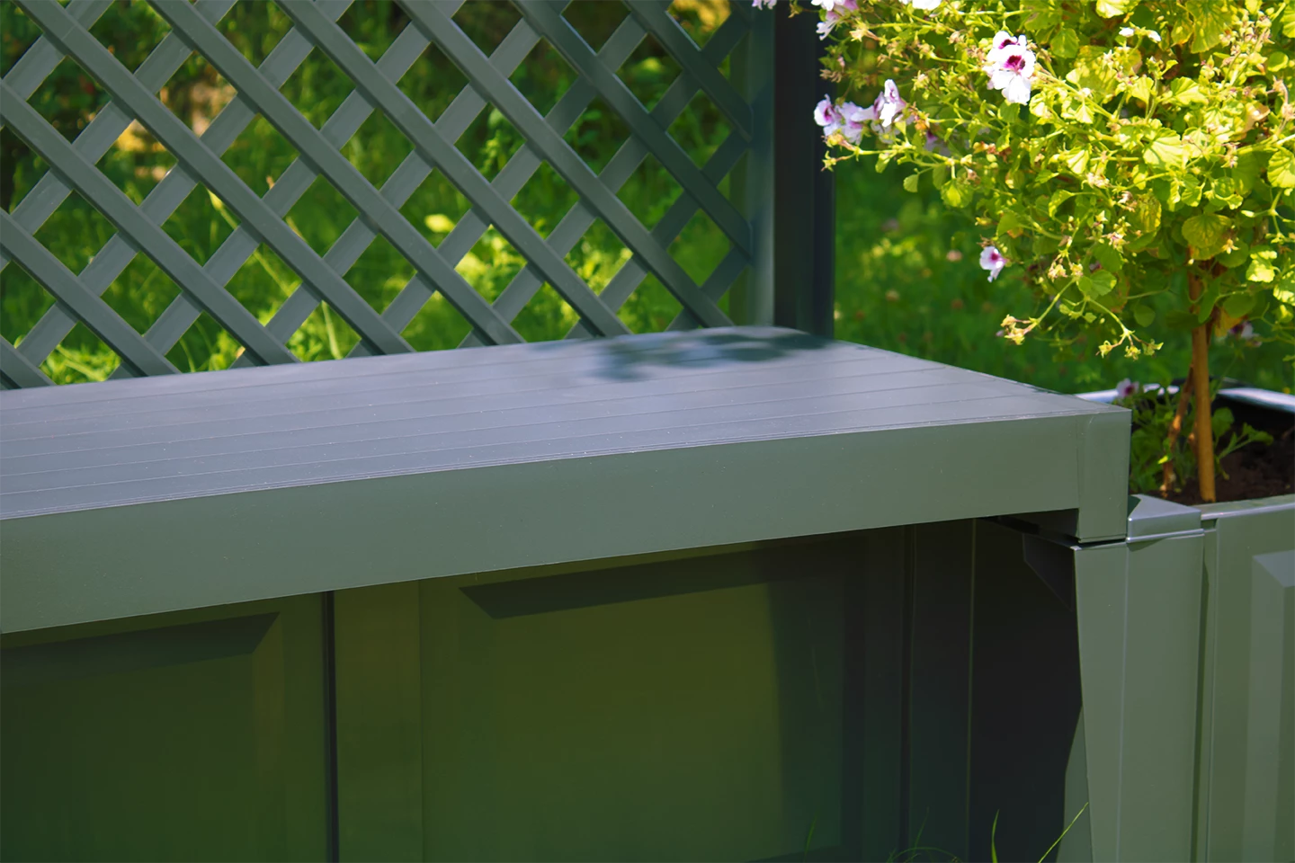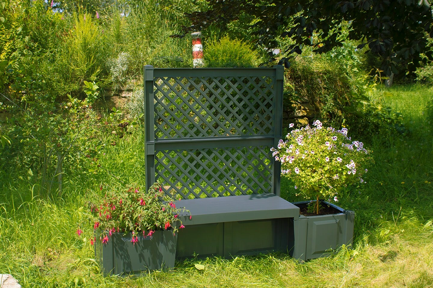 An jeder Seite der Bank ist ein Pflanzkübel angebracht, in dem auch noch Ihre Lieblingsblumen einen schönen und dekorativen Platz bekommen.