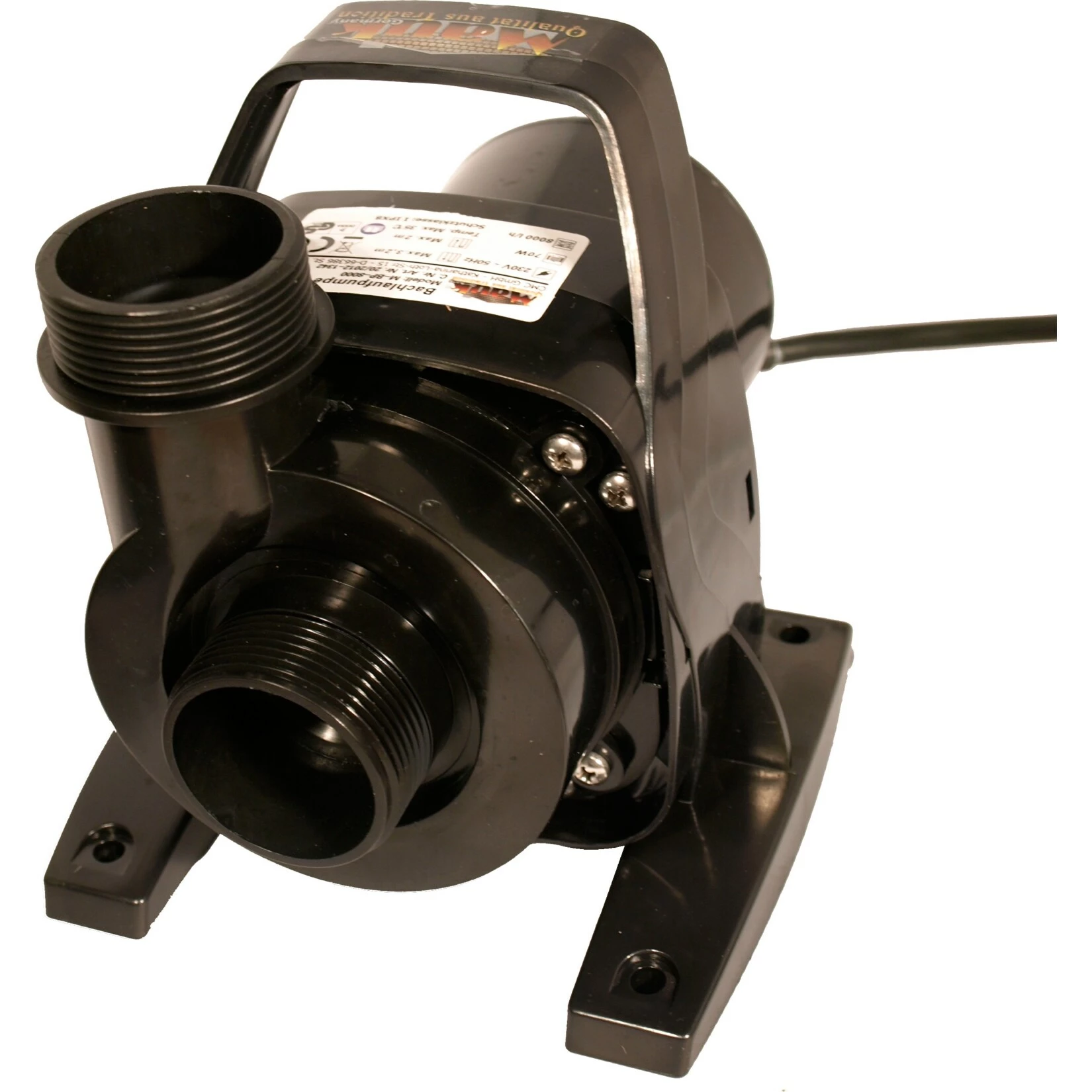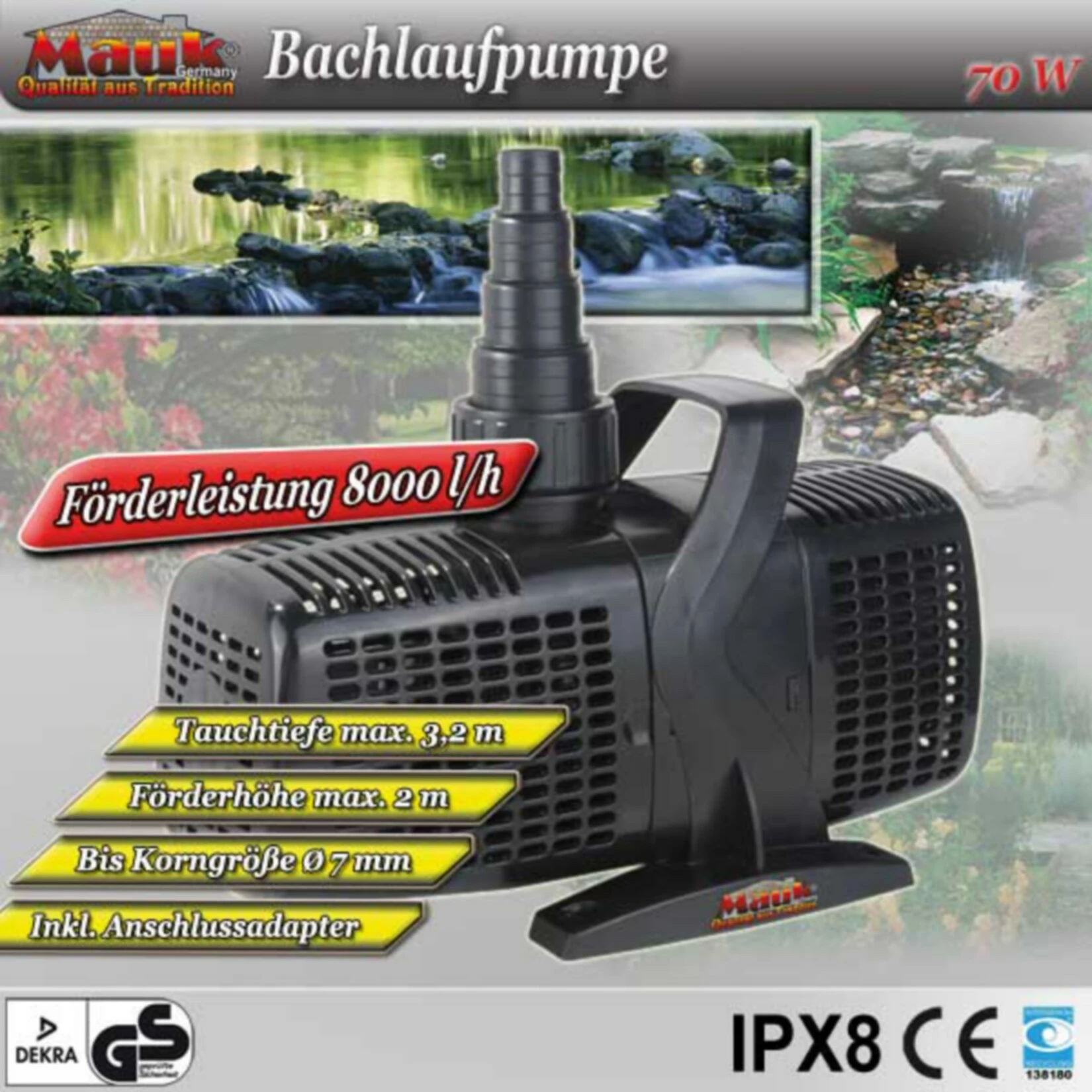 Mit einer Leistung von 70 Watt erreicht sie eine Fördermenge von bis zu 8.000 Litern pro Stunde, bei einer maximalen Förderhöhe von 3,2 Metern. Trotz der hohen Leistung ist der Verbrauch niedrig.