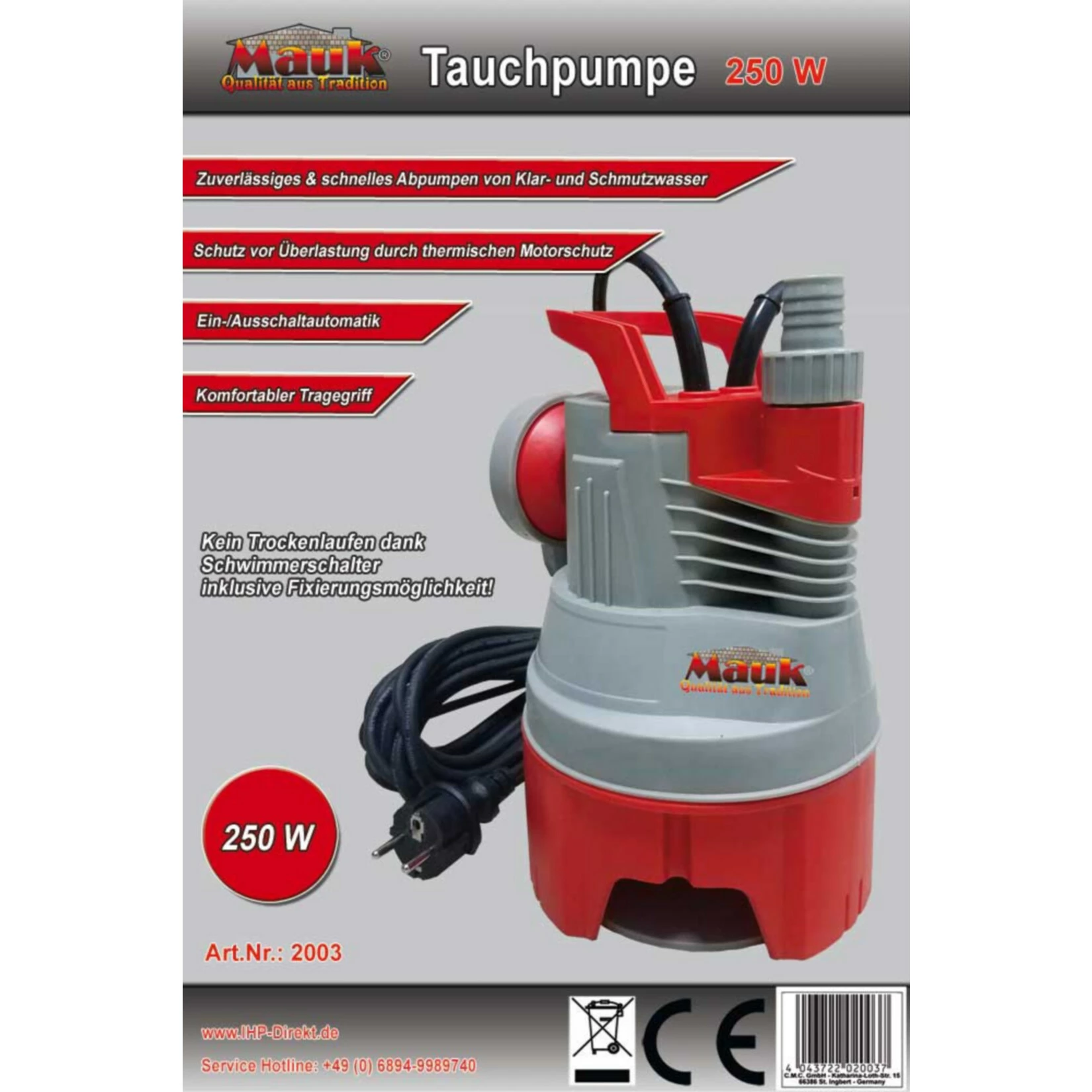 Die Mauk Tauchpumpe 250W ist der ideale Helfer für schnelles und zuverlässiges Abpumpen von Klar- und Schmutzwasser.