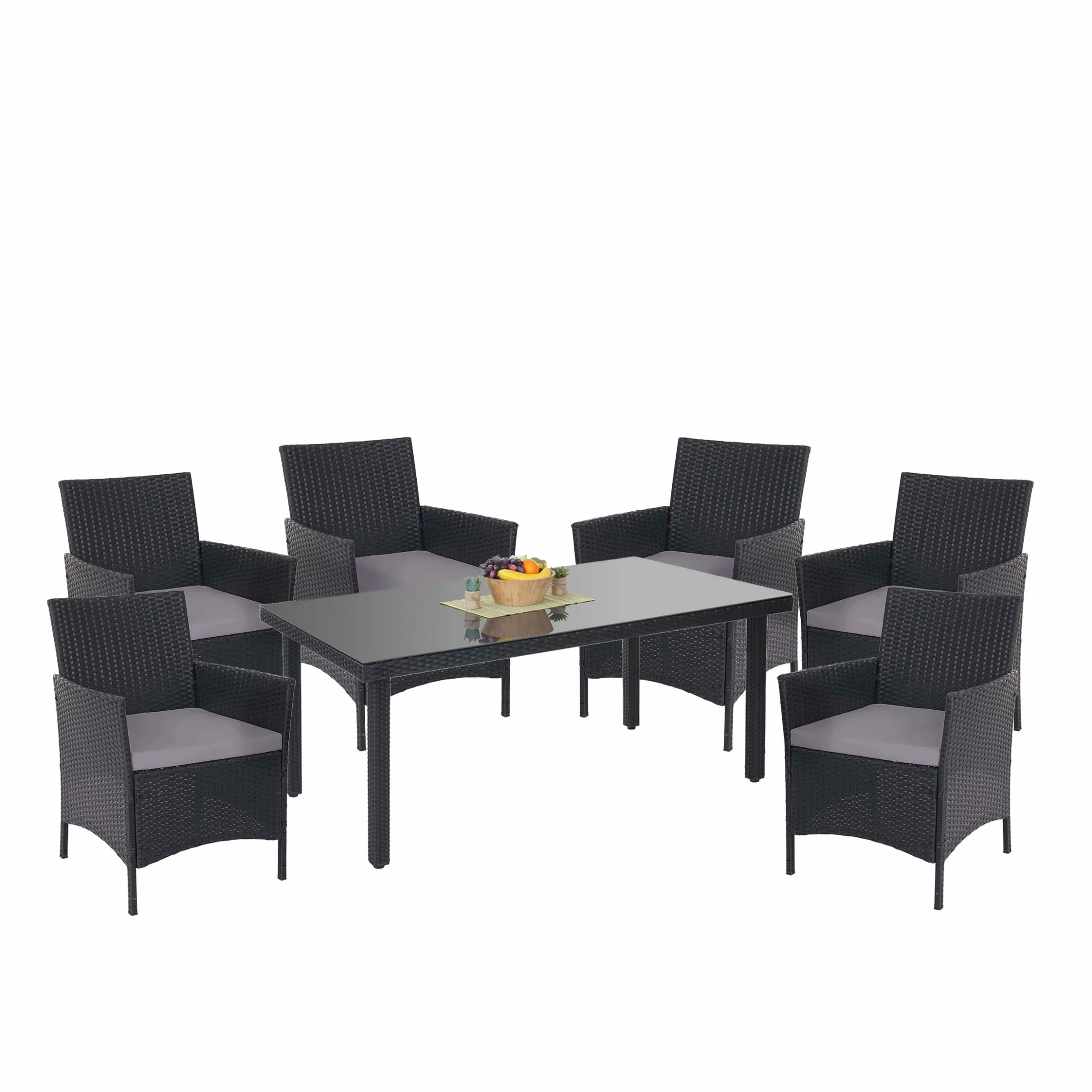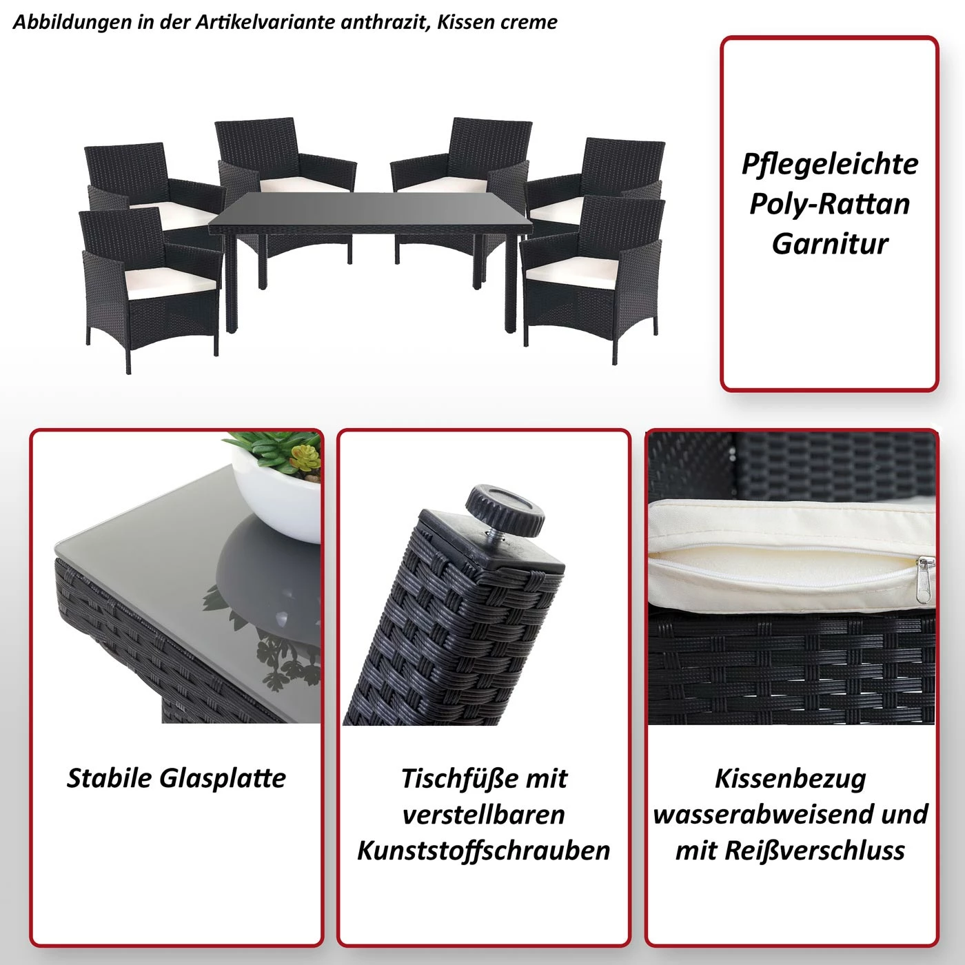 – Lieferumfang: 1x Tisch mit Glasplatte, 6x Sessel (ohne Dekoration)