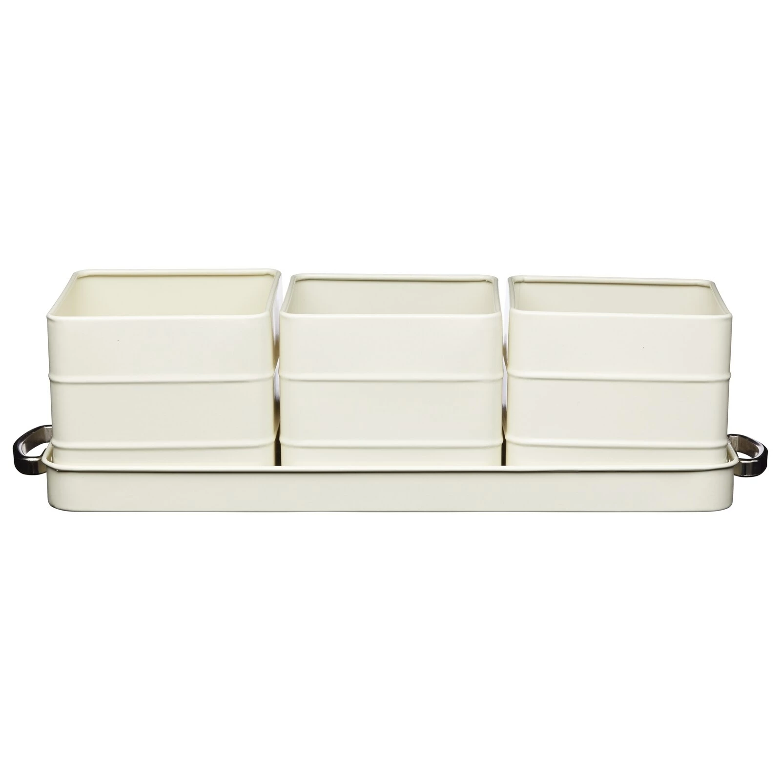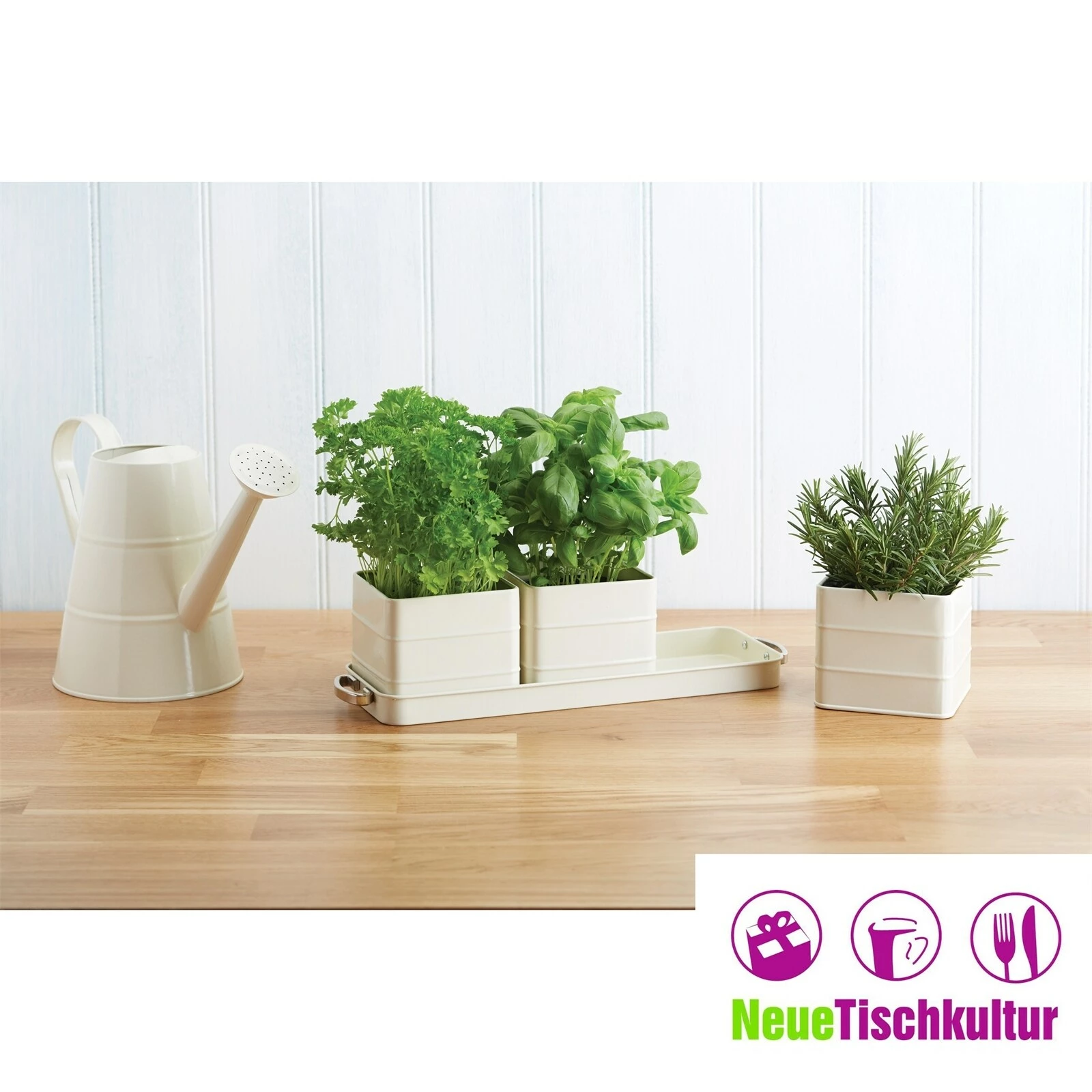 Dieses Kräutertopf-Set im nostalgischen Stil ist perfekt für die Küchenfensterbank! Mit einem klaren und aufgeräumten Stil, der sie zum perfekten Accessoire für jede Küche macht. Jeder Kräutertopf verfügt über Abflusslöcher, damit sich Wasser in der Schale sammeln kann, wobei jeder Topf dann ordentlich in der Schale sitzt, damit Ihre Arbeitsplatten und Fensterbänke trocken und ordentlich bleiben. Gesamtmaß: L/B/H 40 x 12 x 10,5 cm