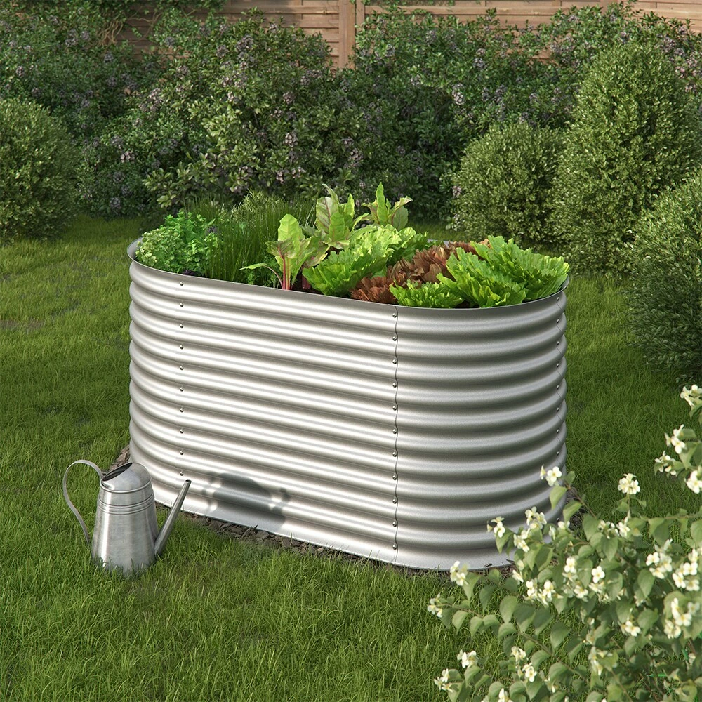 • Das Hochbeet besteht aus verzinktem Stahlblech mit einer Wandstärke von 0,60 mm.