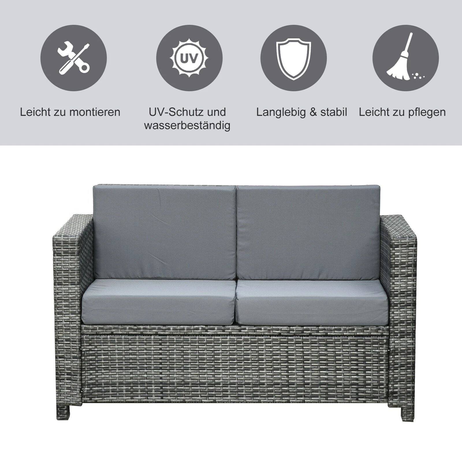 Ein trendiges Loungemöbel für Ihre Terrasse: Mit diesem Gartensofa für zwei Personen richten Sie sich eine gemütliche Outdoor-Sitzecke ein. Das Sofa punktet mit seiner hochwertigen Rattan-Optik und passt hervorragend zu unseren-Gartensesseln. Das Material ist robust und witterungsbeständig. Machen Sie es sich und Ihren Gästen bequem – am Pool, auf der Terrasse oder im Wintergarten.