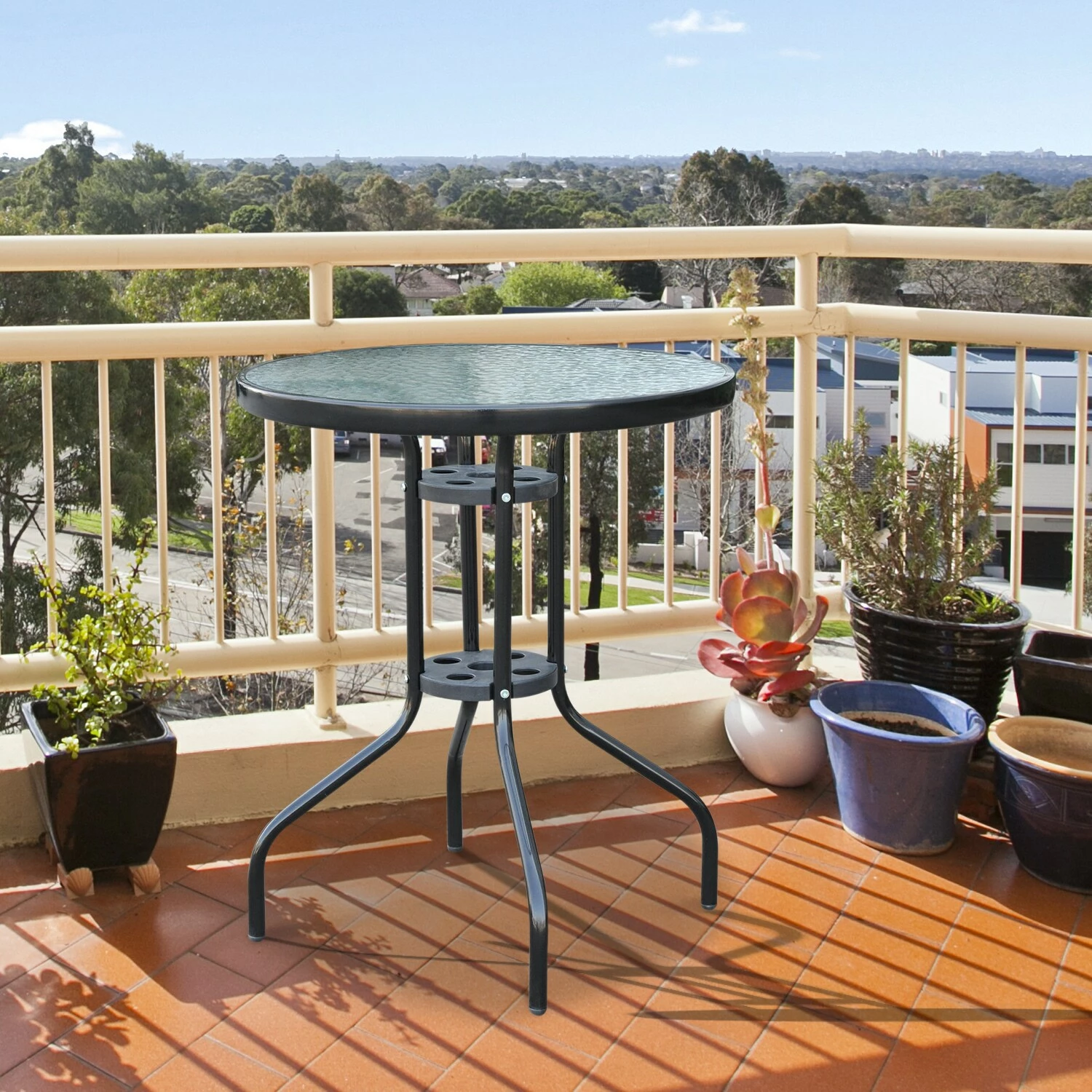 Unser formschöner Balkontisch ergänzt Ihren Außenbereich stilvoll. Stützbeine und Tischrahmen sind aus pulverbeschichtetem Metall gefertigt. Das sorgt für angemessene Standfestigkeit und macht Ihren Tisch ideal für den Einsatz im Freien. Die robuste Tischplatte wird aus 5 mm starkem Sicherheitsglas gefertigt und ist mit einem eleganten Wasserkräuselungsmuster versehen. Zudem haben Sie Ihren Balkontisch im Handumdrehen aufgebaut. So kommt er vielseitig als Ergänzung einer bestehenden Sitzgarnitur oder als dekoratives Element im Garten oder auf der Terrasse zum Einsatz.