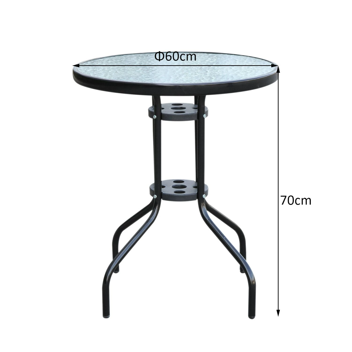- Gesamtmaße: Ø60 x H70 cm, Stärke der Tischplatte 5 mm, max. Belastbarkeit 50 kg