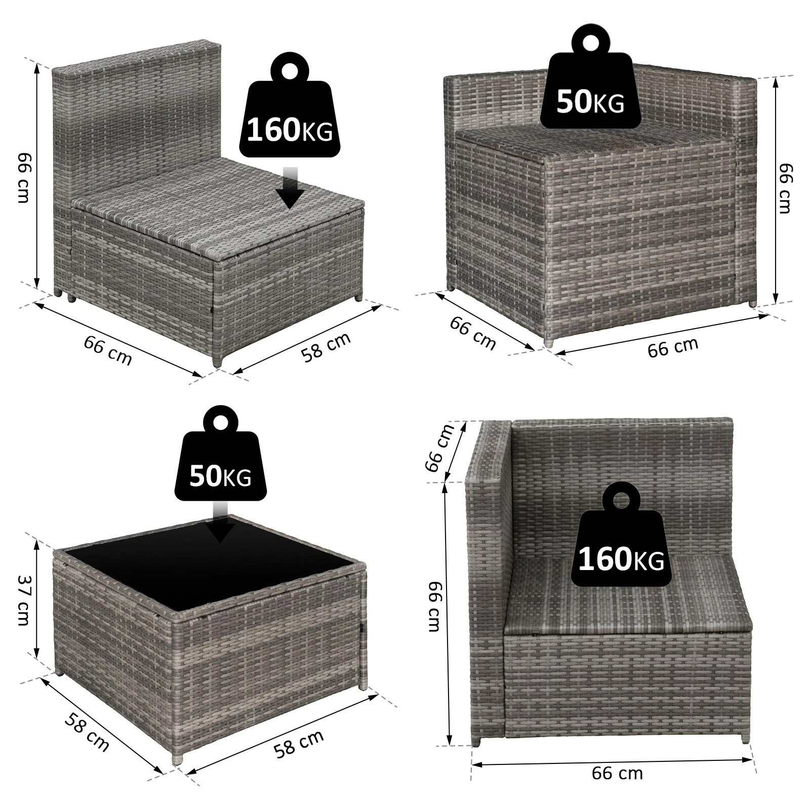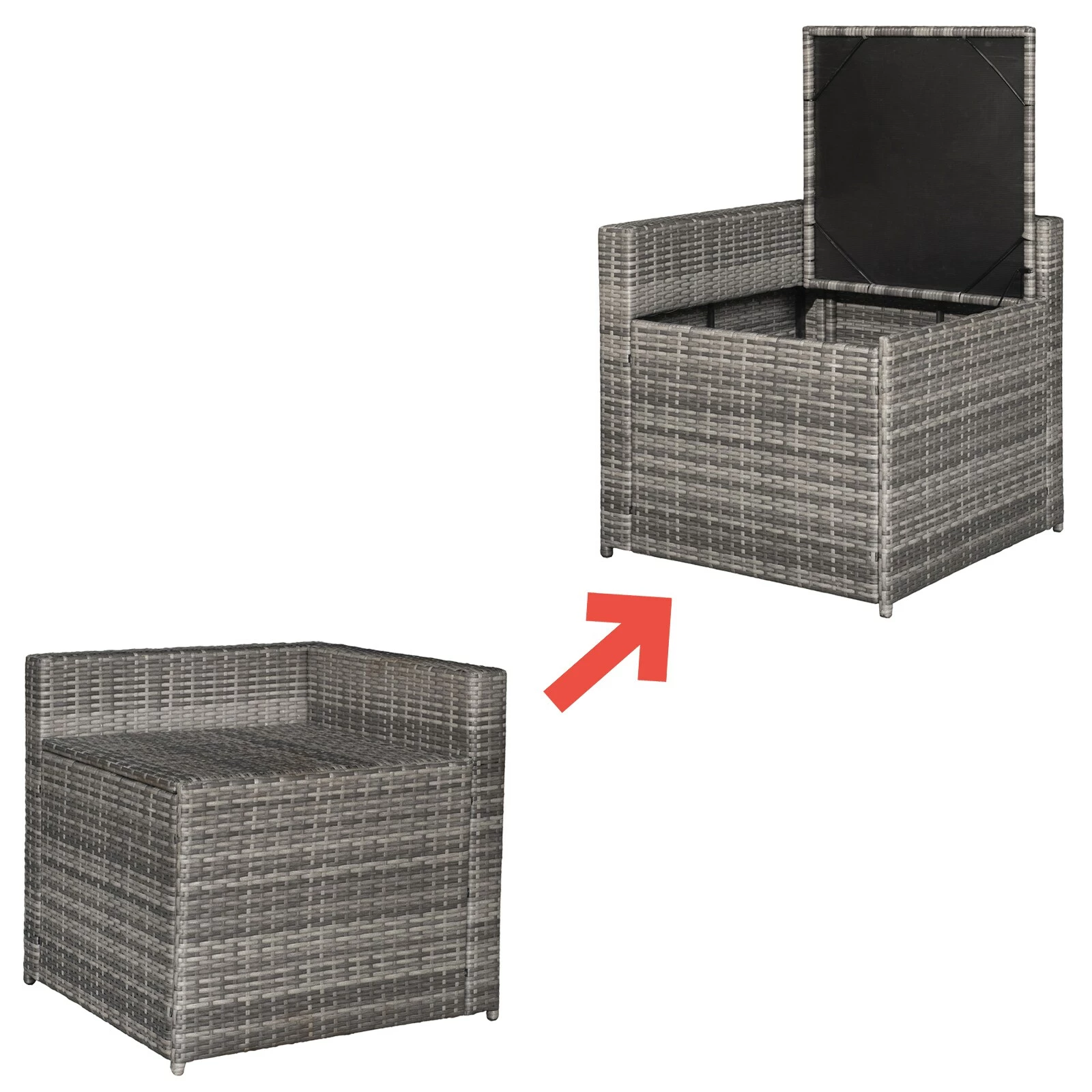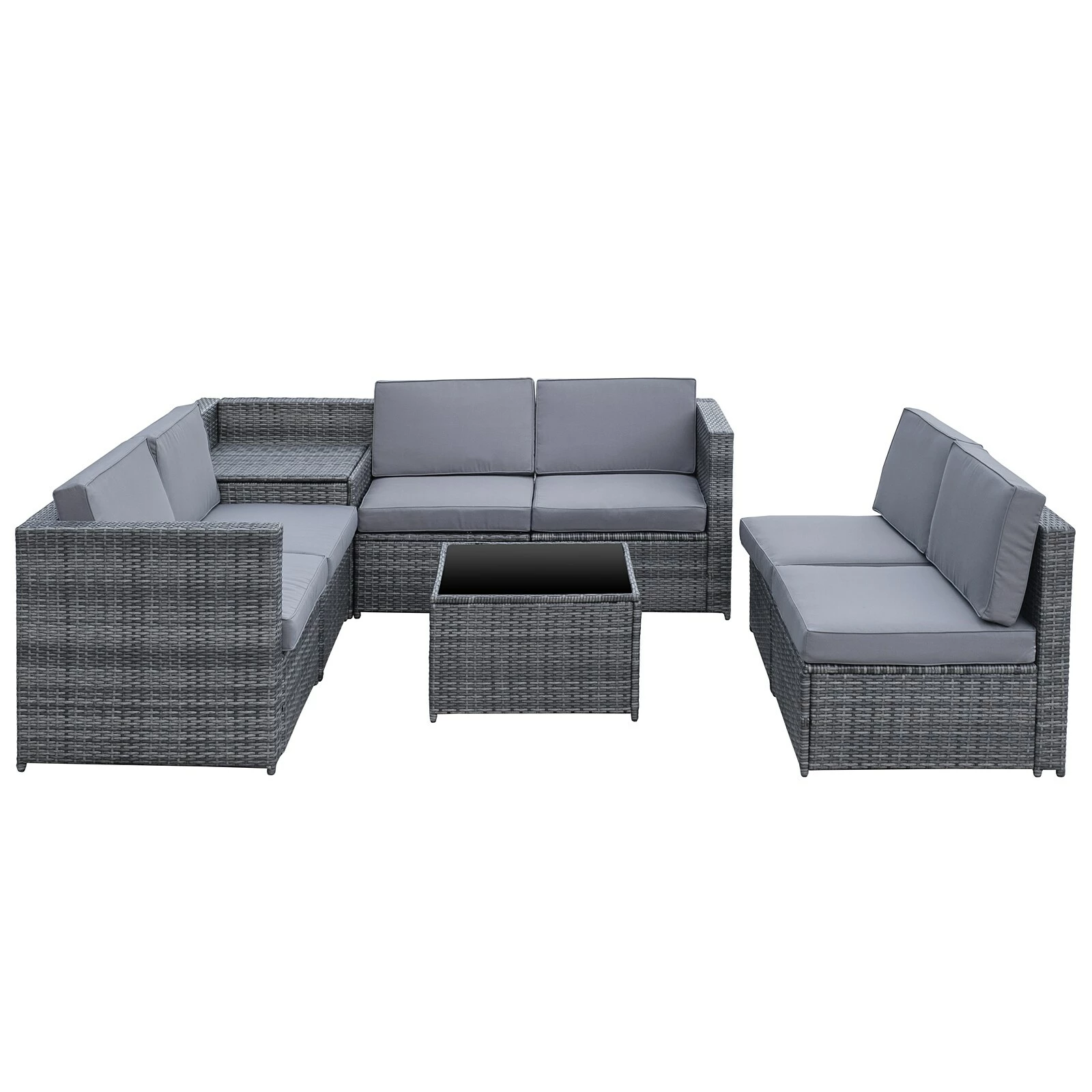 Genießen Sie Ihren Sommer in vollen Zügen auf Ihrer exklusiven Gartenlounge. Das achtteilige Set ist aus trendigem Polyrattan gefertigt. Das wetterfeste Kunstfasergeflecht wird in Handarbeit hergestellt und überzeugt durch seine Outdoor-tauglichkeit. Für Stabilität sorgt ein rostfreies Untergestell aus Stahl und für besten Sitzkomfort die 10 cm dicken Kissen. Kühle Getränke, Telefon und andere Gegenstände finden auf dem Couchtisch mit Sicherheitsglasplatte Platz. Starten Sie relaxt in Ihren Wohlfühlsommer!