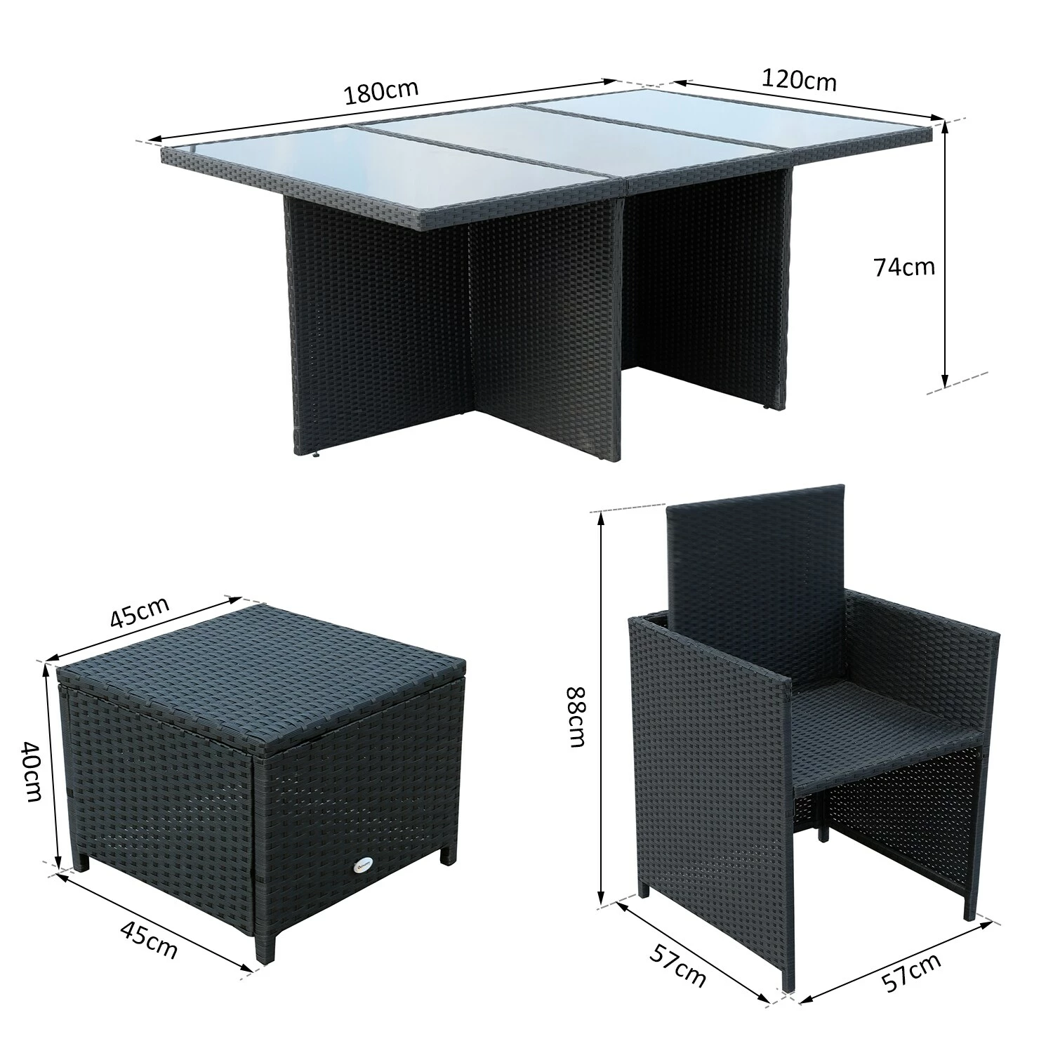- Lieferumfang: 6 x Stuhl, 4 x Hocker, 1 x Tisch, 16 x Kissen, Montagezubehör